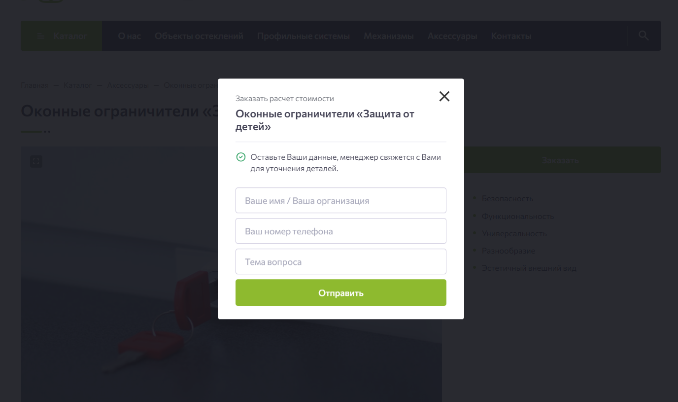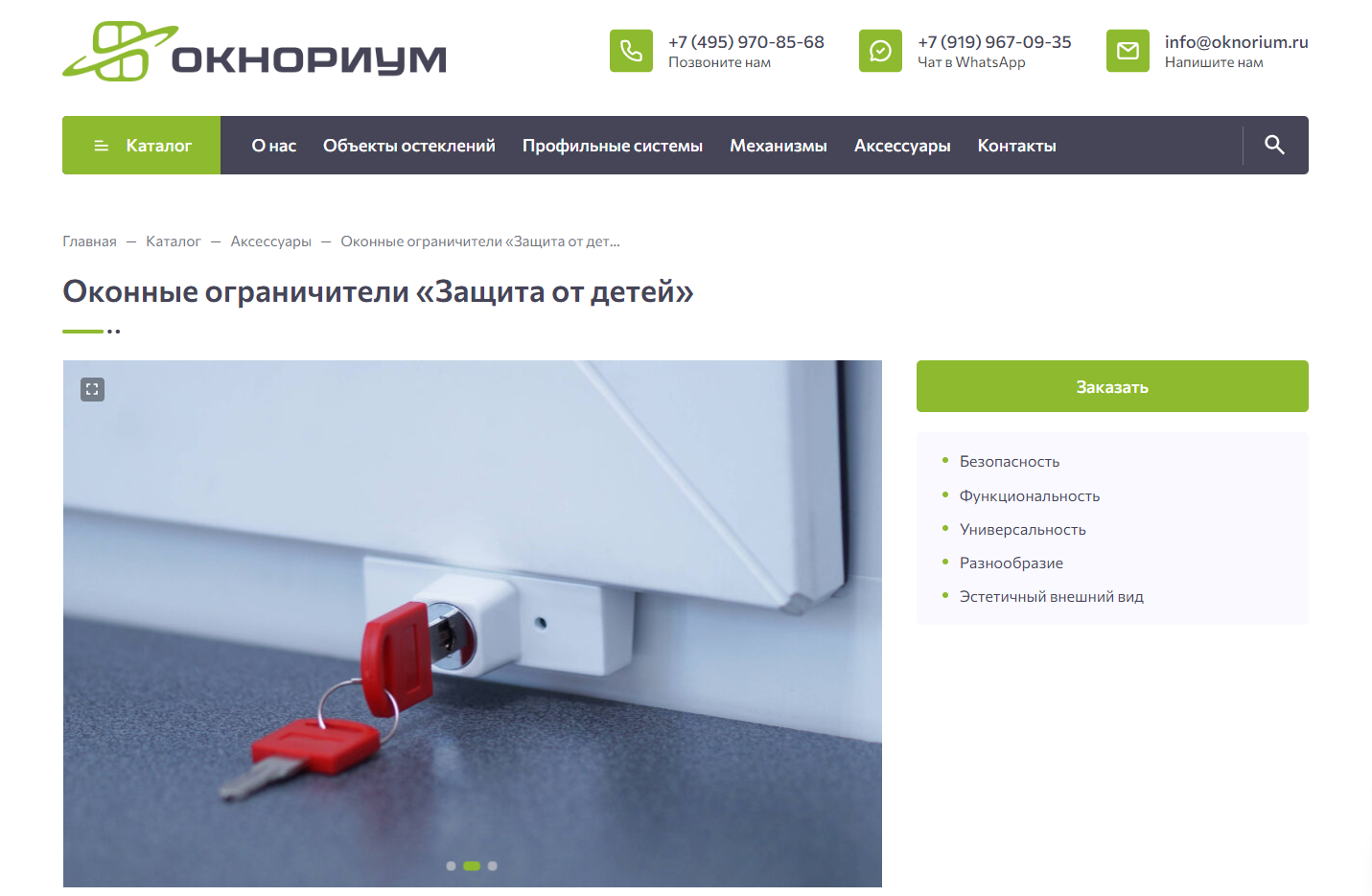 Также в каждой карточке товара размещены атрибуты, качественные фотографии, а также есть возможность заказать обратный звонок через удобную кнопку и контактную форму.