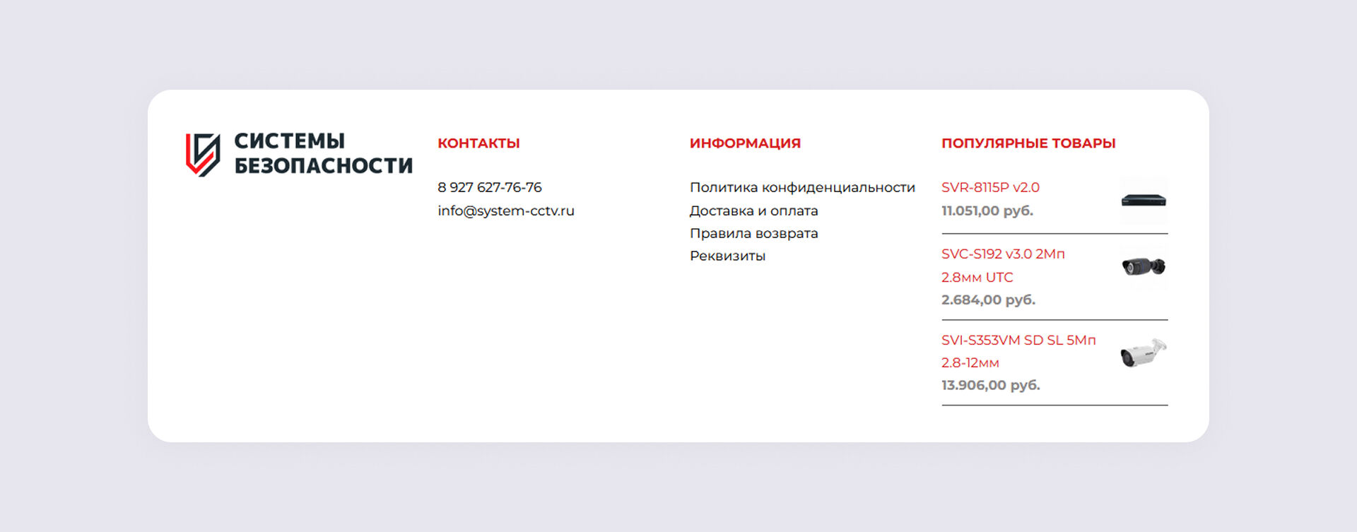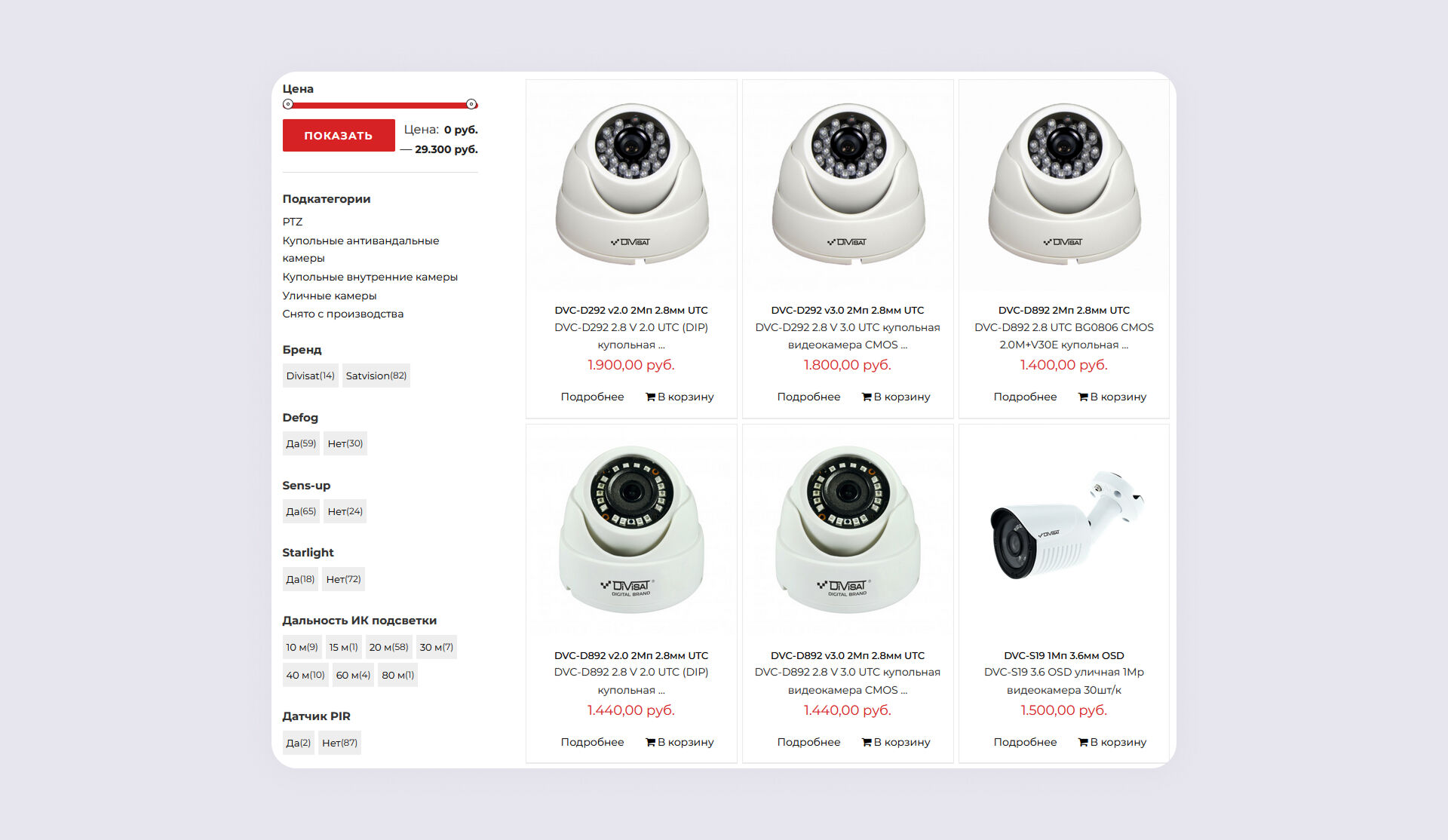 Разработать сайт с подробным каталогом продукции товаров линейки видеонаблюдения и СКУД