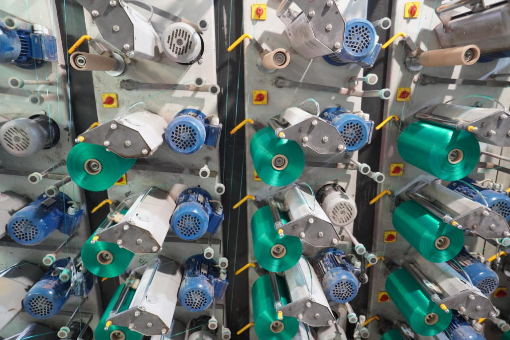 Нам посчастливилось посмотреть, как изготавливается нитка зеленого цвета.