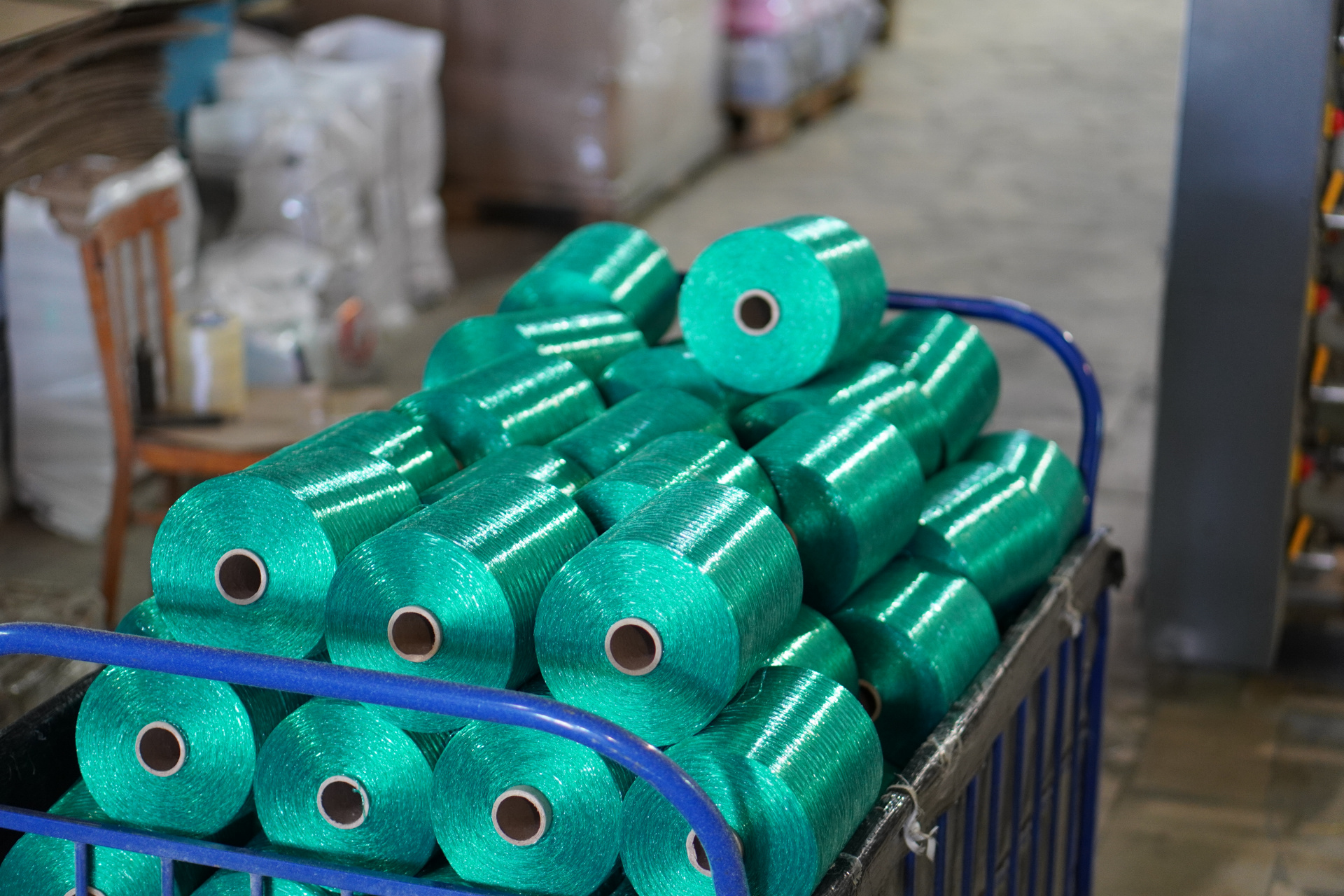 Нам посчастливилось посмотреть, как изготавливается нитка зеленого цвета.