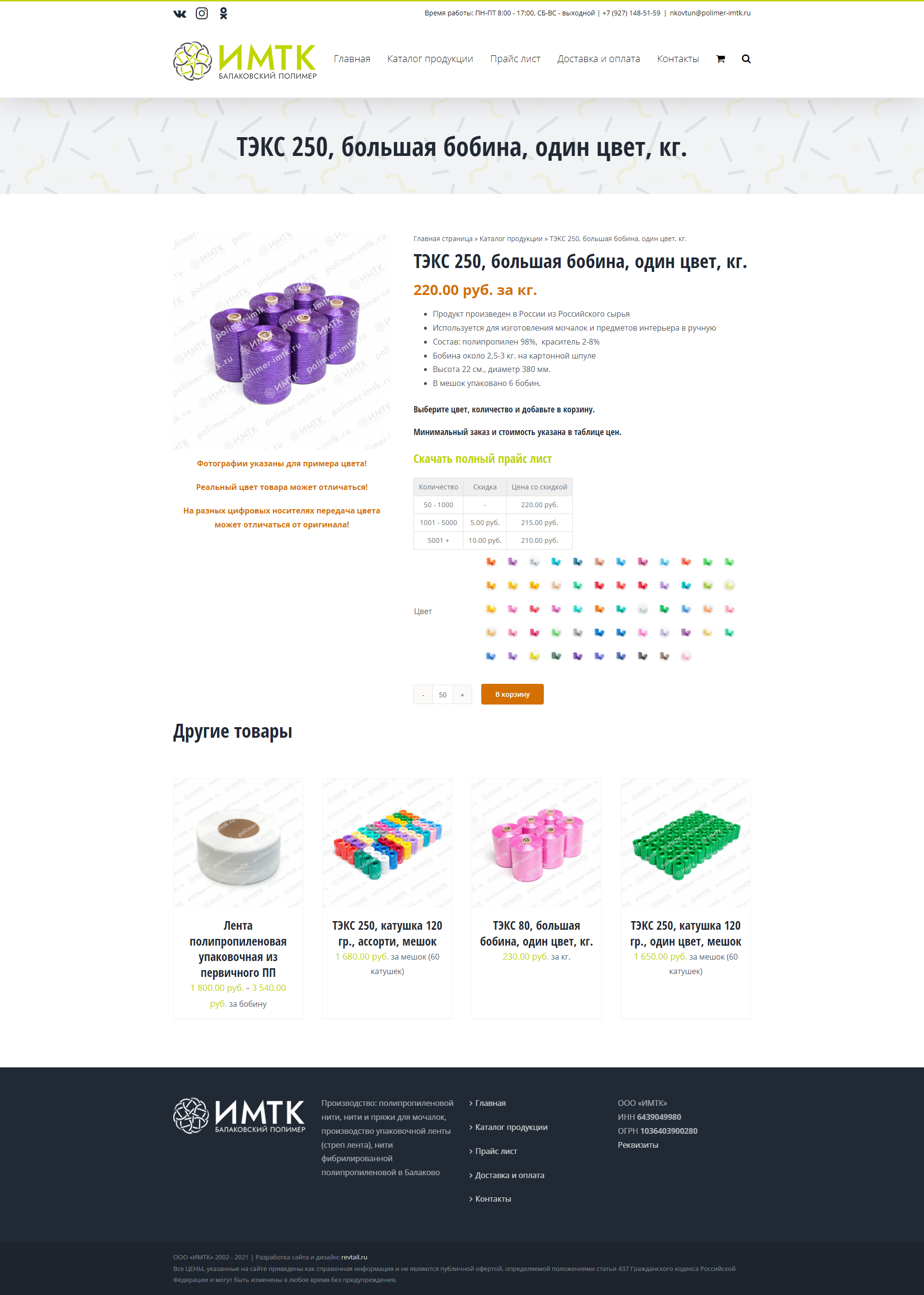 Ссылочка на сам товар из примера — https://polimer-imtk.ru/product/teks-250-bolshaya-bobina-odin-czvet-kg/