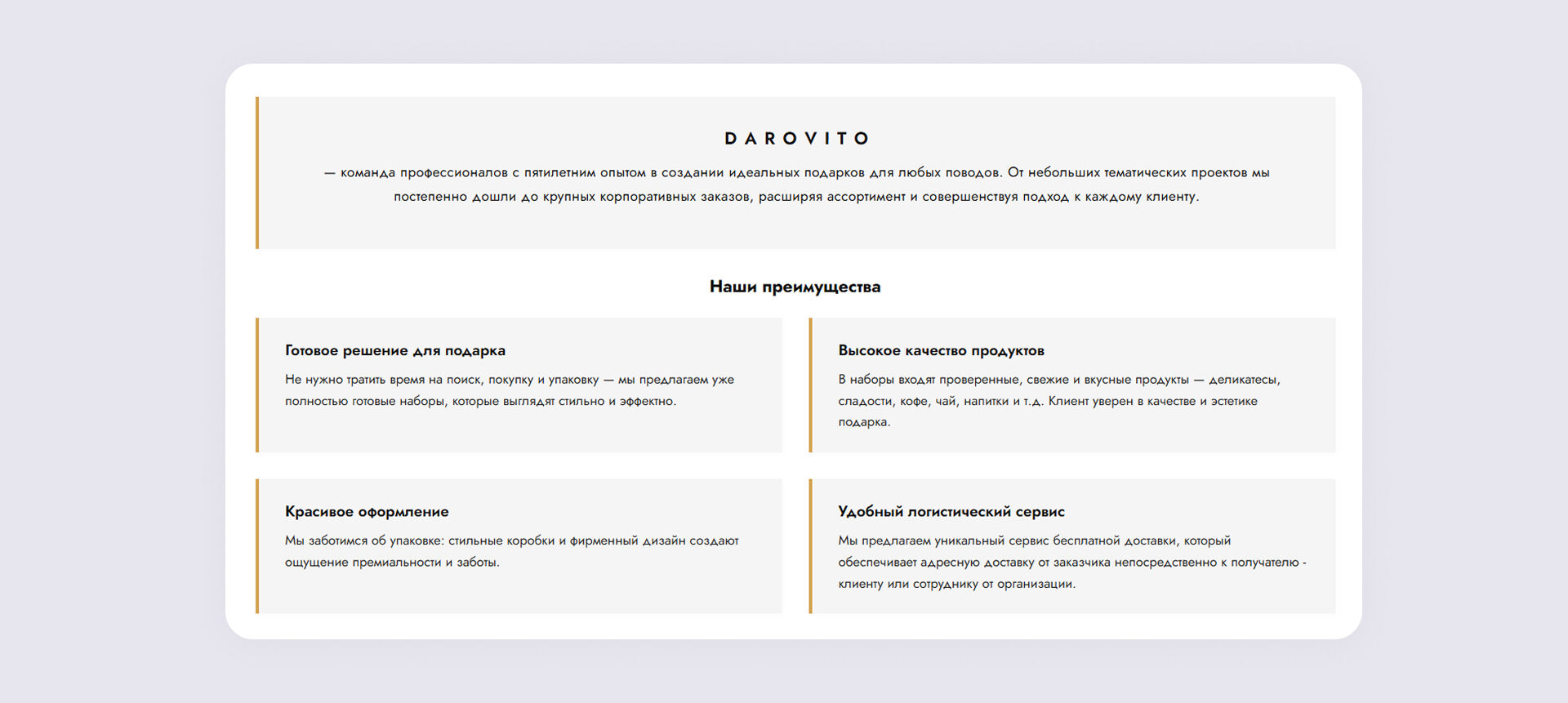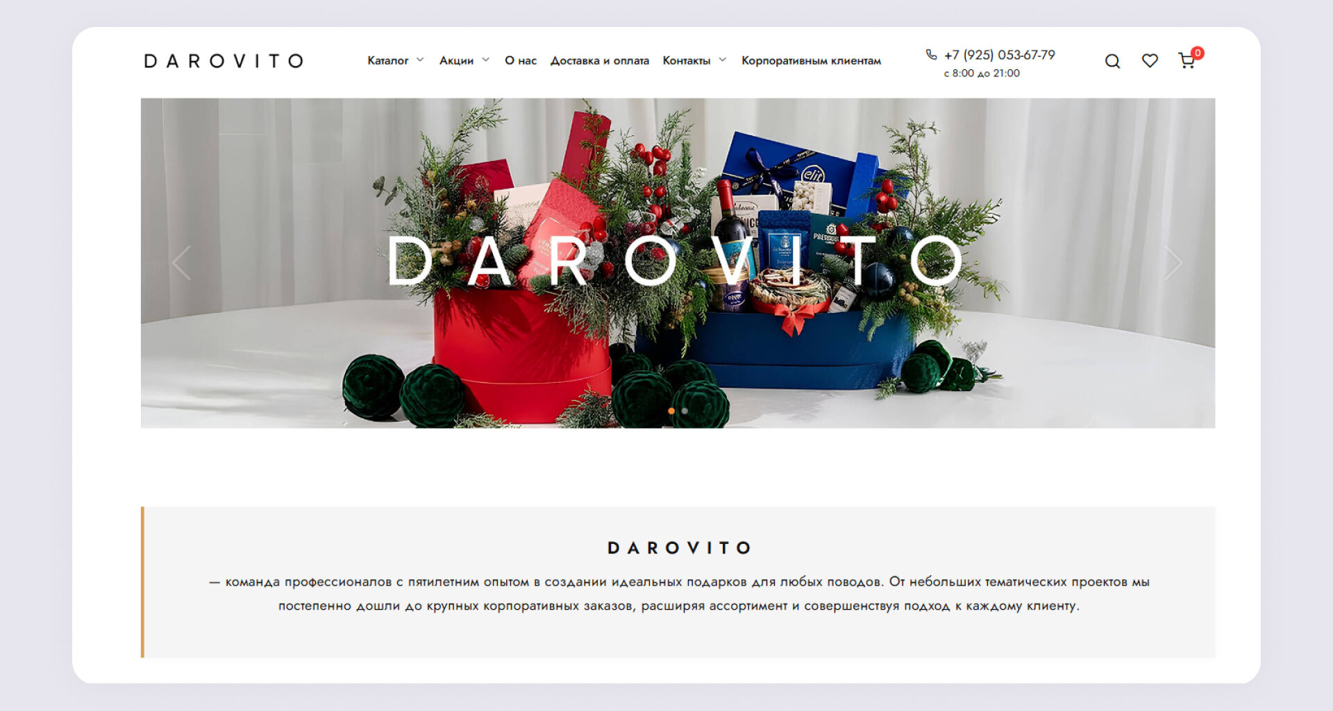 Необходимо разработать интернет-магазин для премиальных подарочных наборов.