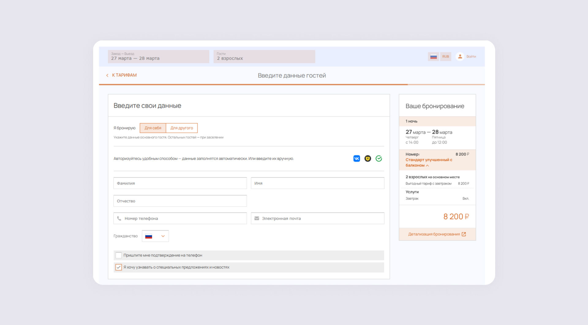 Онлайн-бронирование на сайте реализуется с помощью сервиса бронирования, на страницу с модулем которого ведут кнопки «Забронировать номер» и «Забронировать онлайн». При их нажатии открывается страница с интегрированным блоком. В нём пользователь может легко выбрать и оплатить понравившийся номер.