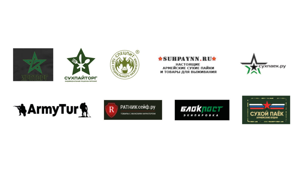 Большинство конкурентов стилизуются под военно-тактический стиль, символику спецподразделений или почти полностью копируют логотипы «Армии России»