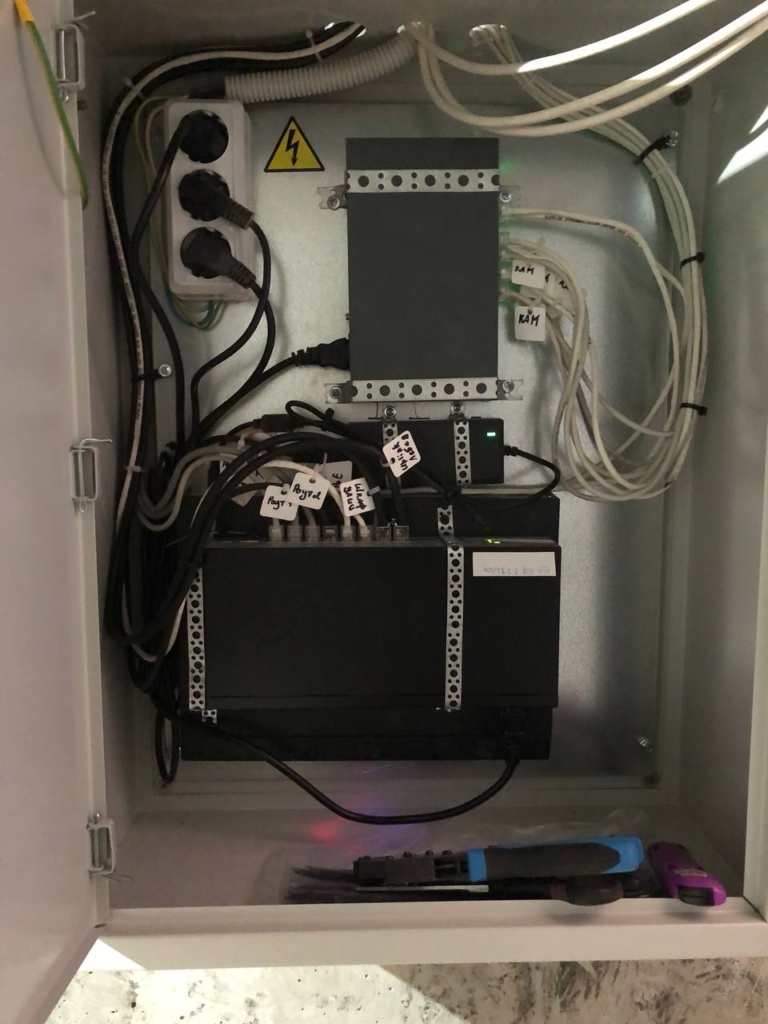 Монтаж щитов, был выполнен по необходимым точкам. Локальная сеть у клиента довольно ветвистая, на объекте установлено более 7 ЩМП, часть из них нуждалась в замене и пересборке, чем мы и занялись.