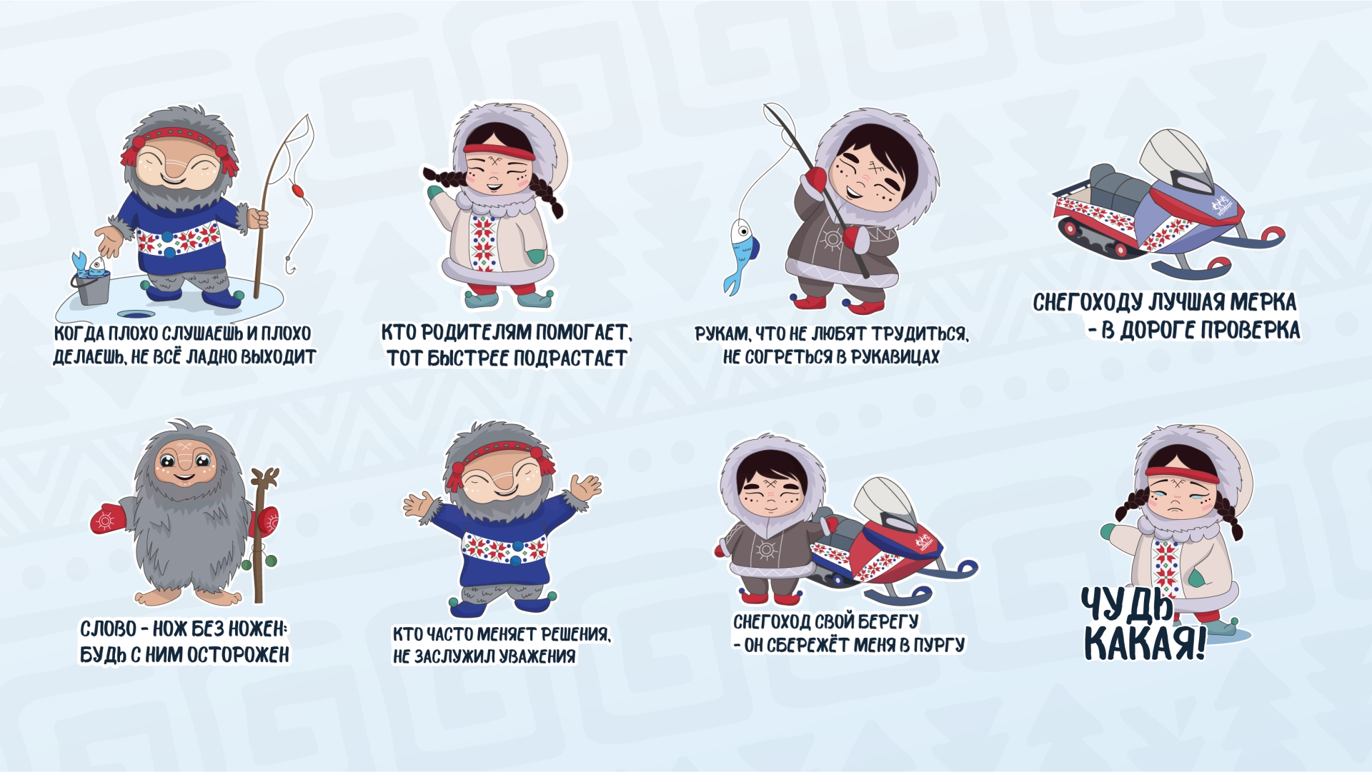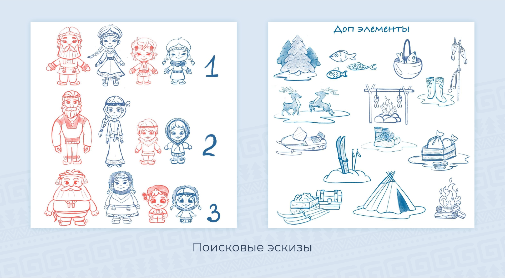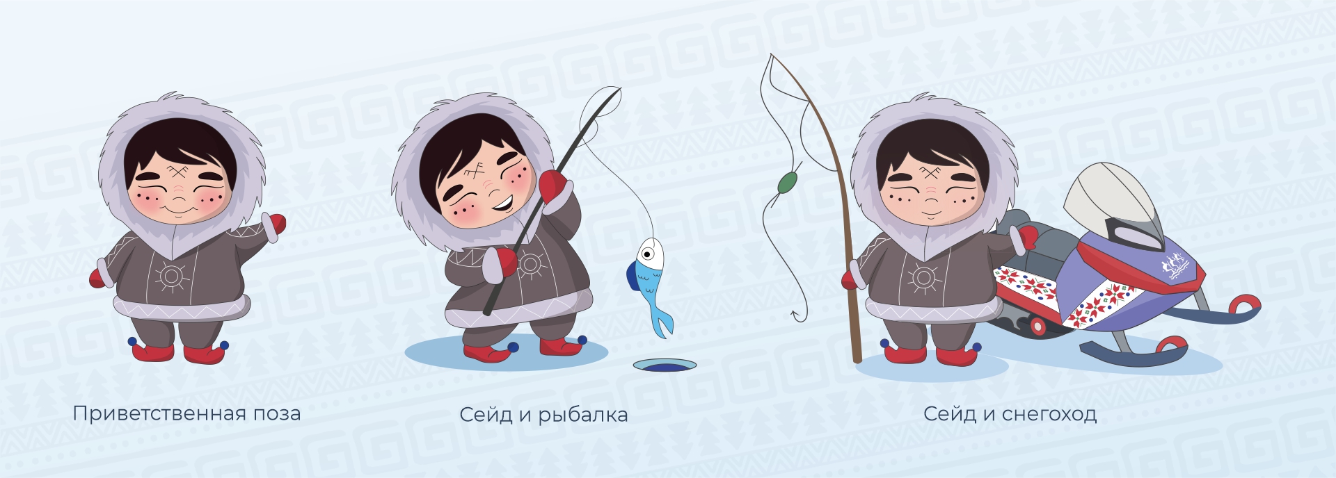 Таким образом появились образы сказочных персонажей: саамских детей Сейда и Инги, чахкли Волшебника и чахкли Рыбака, а также вспомогательные иллюстрации и аутентичные фоны для передачи атмосферы и более глубокого погружения.