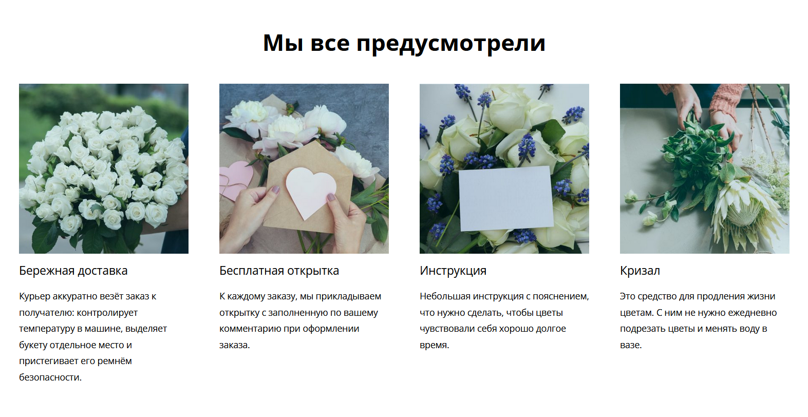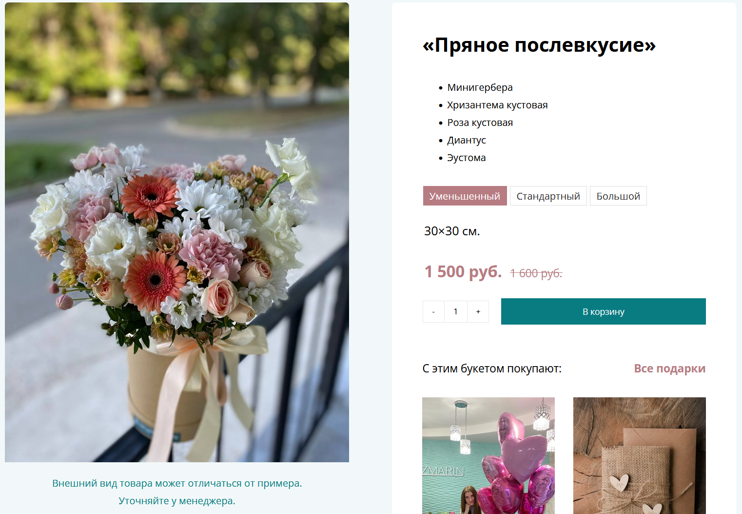 И еще, обязательно показываем похожие композиции, в случае, если клиент хочет выбрать другой товар: