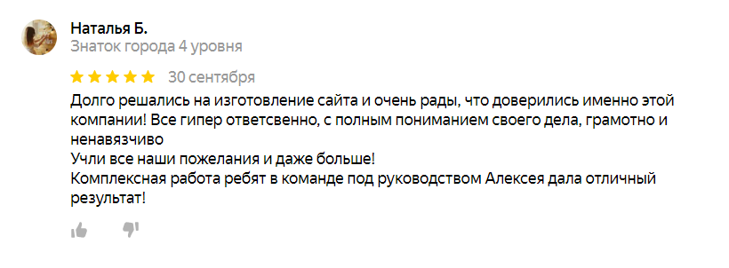 Клиент остался доволен, оставил приятных отзыв в нашей карточке на Яндекс.