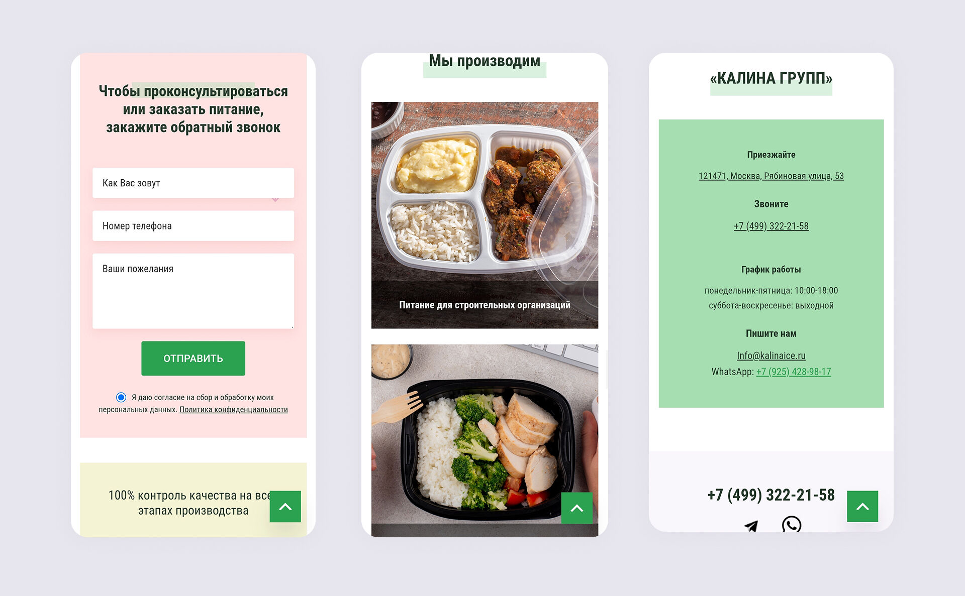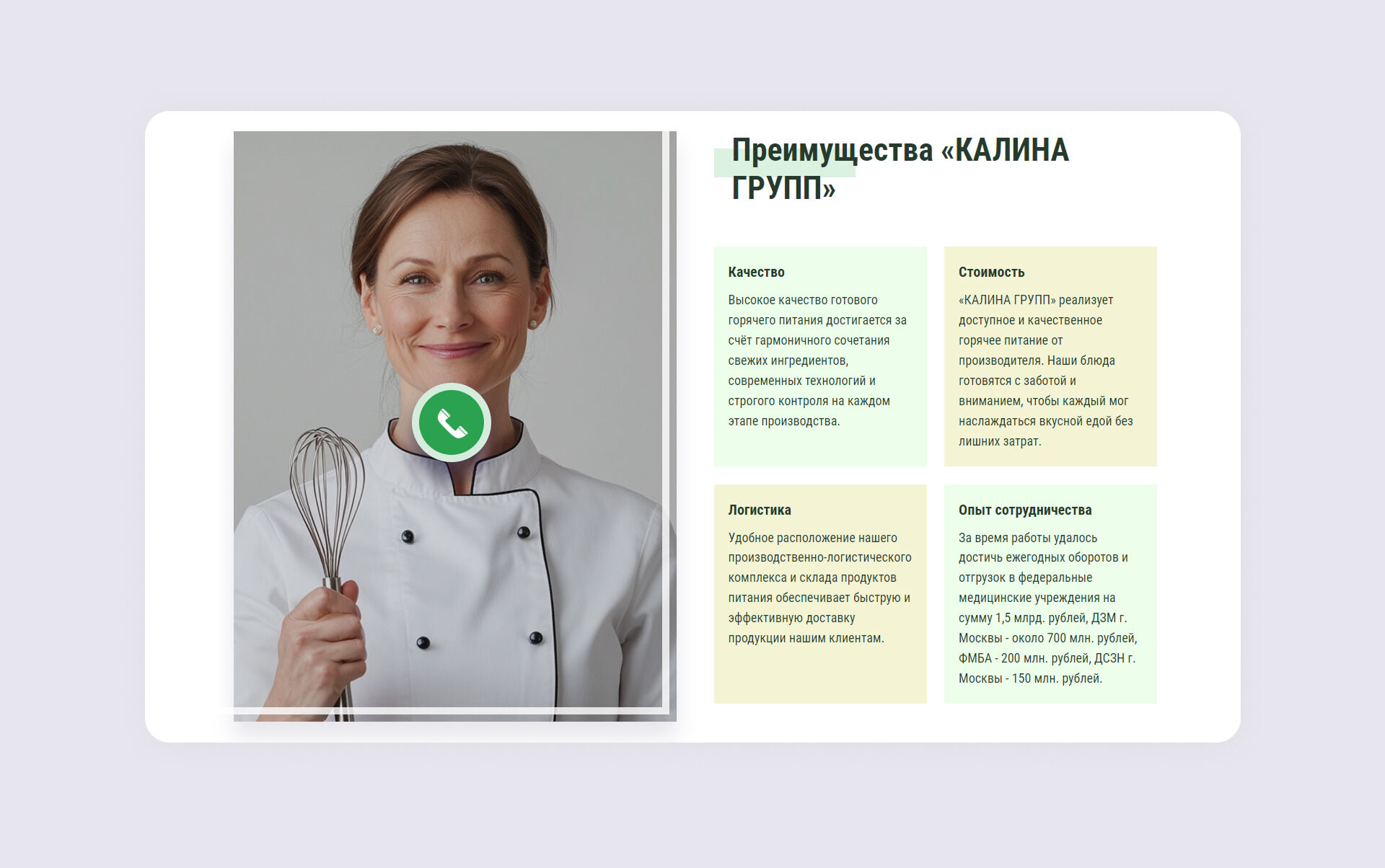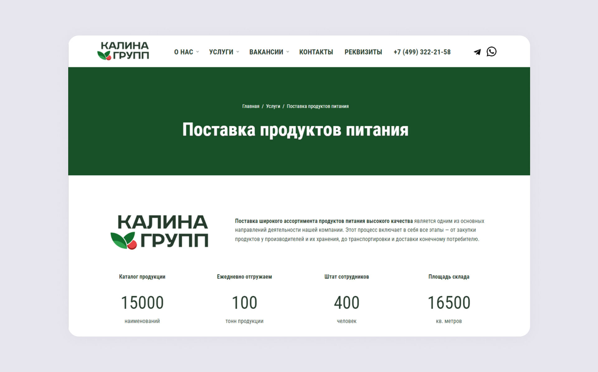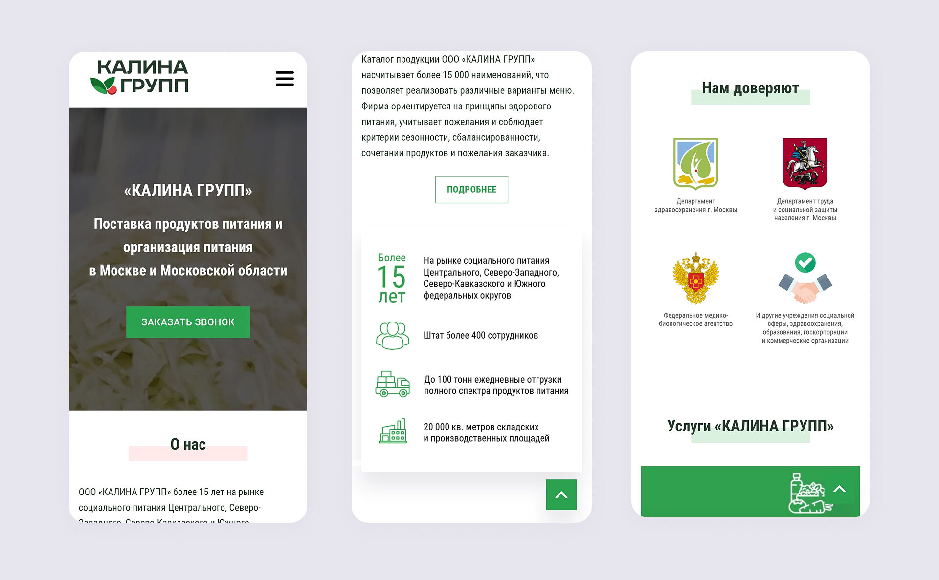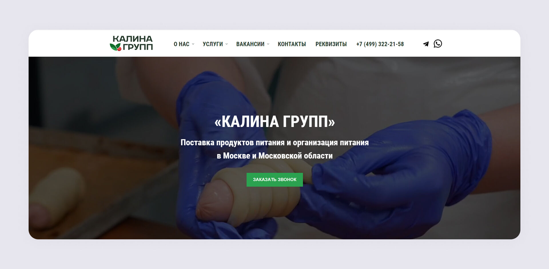 Создать сайт для компании «КАЛИНА ГРУПП», занимающейся поставкой продуктов питания и организацией питания в Москве и Московской области.