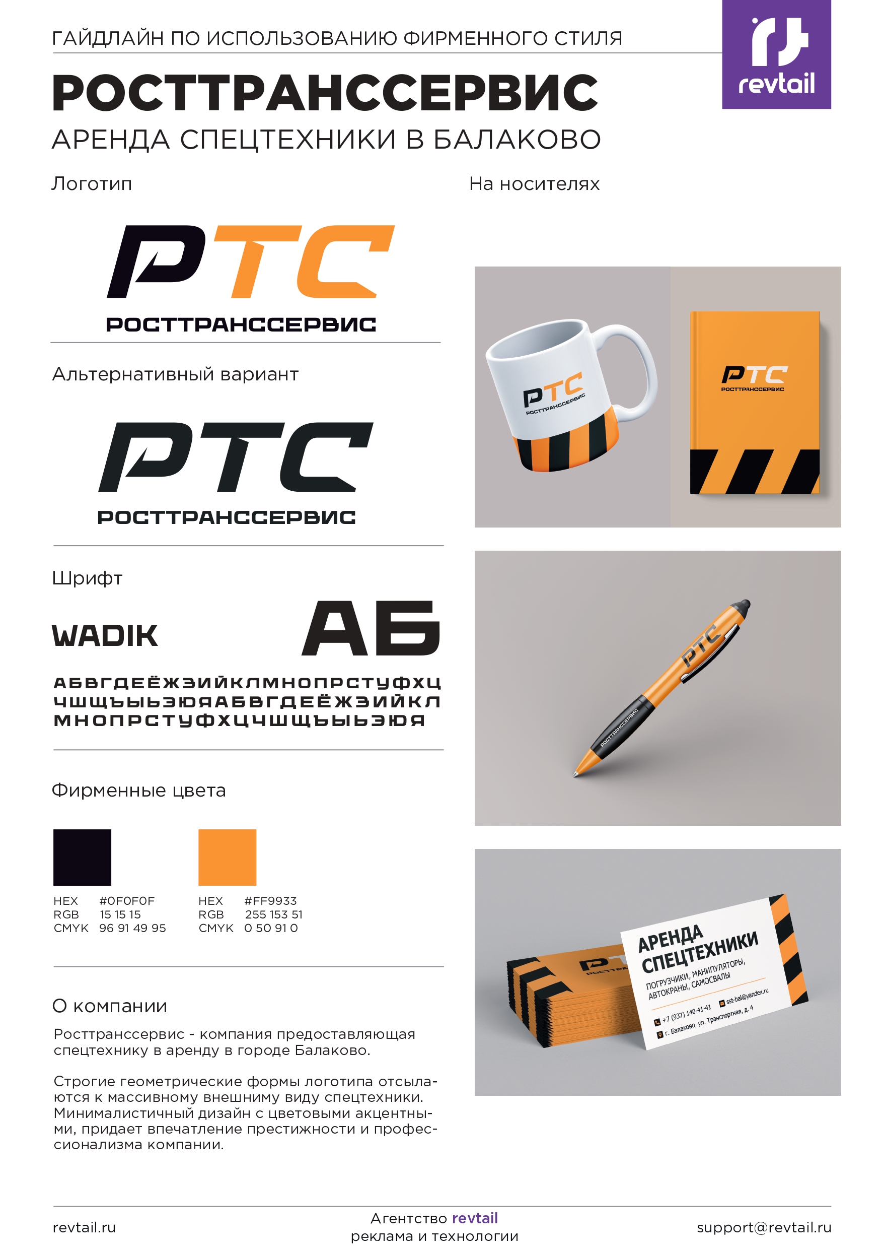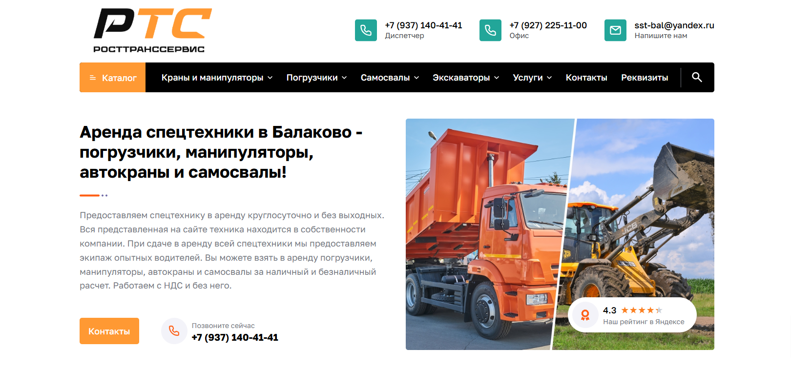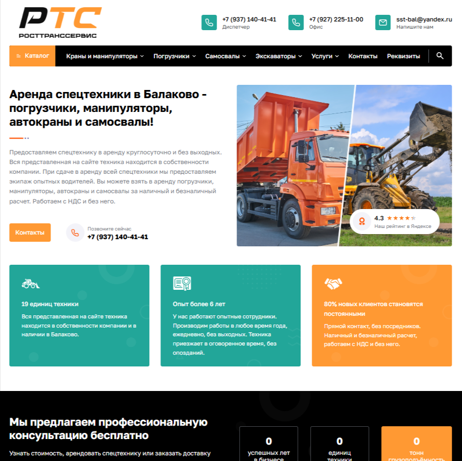 Разработать название, фирменный стиль и логотип, а затем создать сайт для компании «РОСТТРАНССЕРВИС», занимающейся арендой спецтехники в городе Балаково.