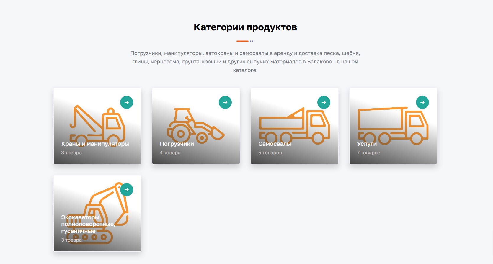 При переходе на любую из вкладок открывается страница с карточками товаров, обязательно содержащими изображение, название и краткое описания. Каждая карточка включает необходимые атрибуты, качественные фотографии и кнопку для заказа обратного звонка через заполнение понятной контактной формы.