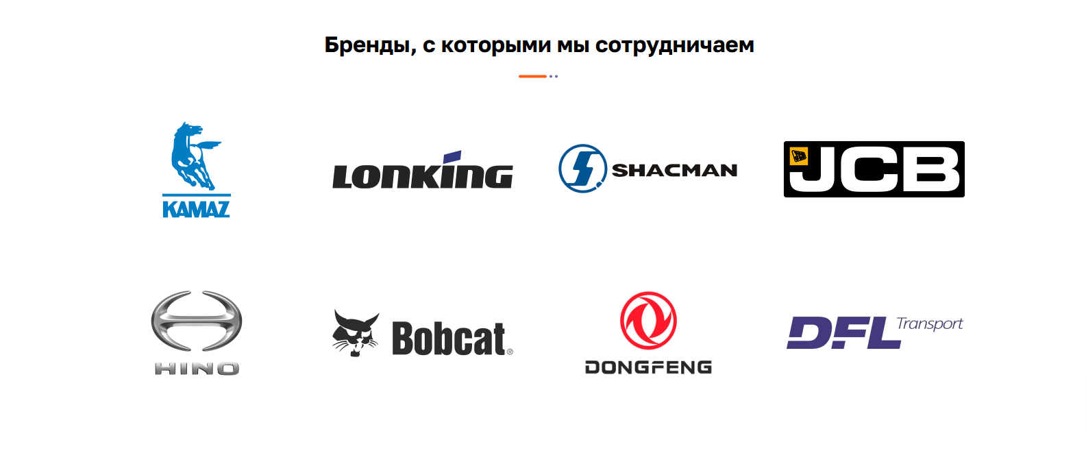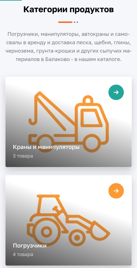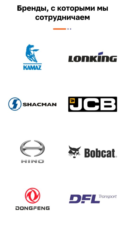 Далее на главной странице разместили блок с брендами – марками погрузчиков, манипуляторов, автокранов, самосвалов и другой спецтехники, имеющейся в автопарке «РТС» и доступной к заказу. Этот раздел был создан для того, чтобы продемонстрировать широкий ассортимент и надежность предоставляемой техники.