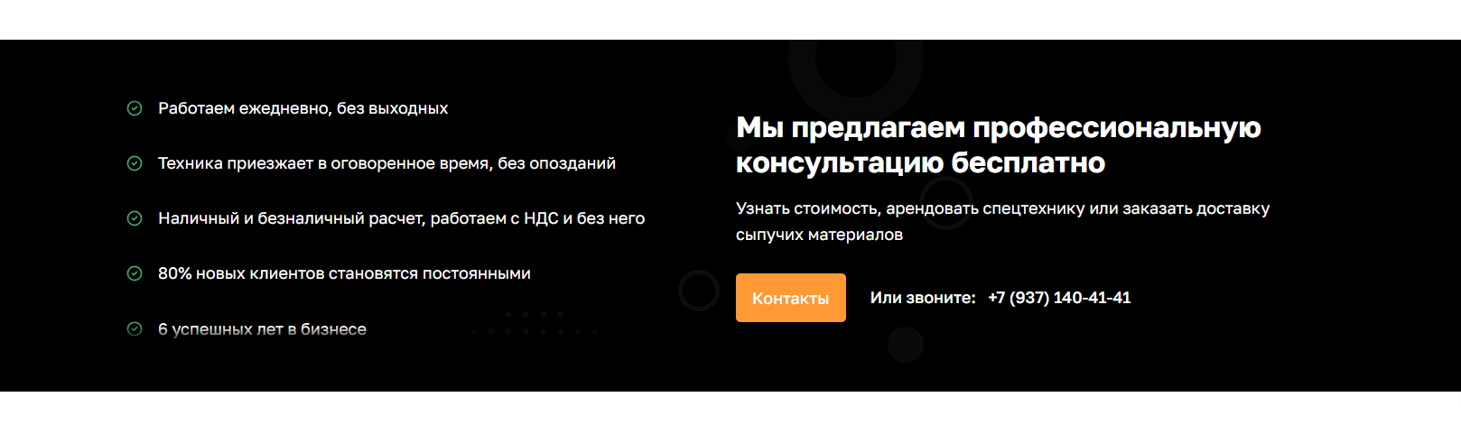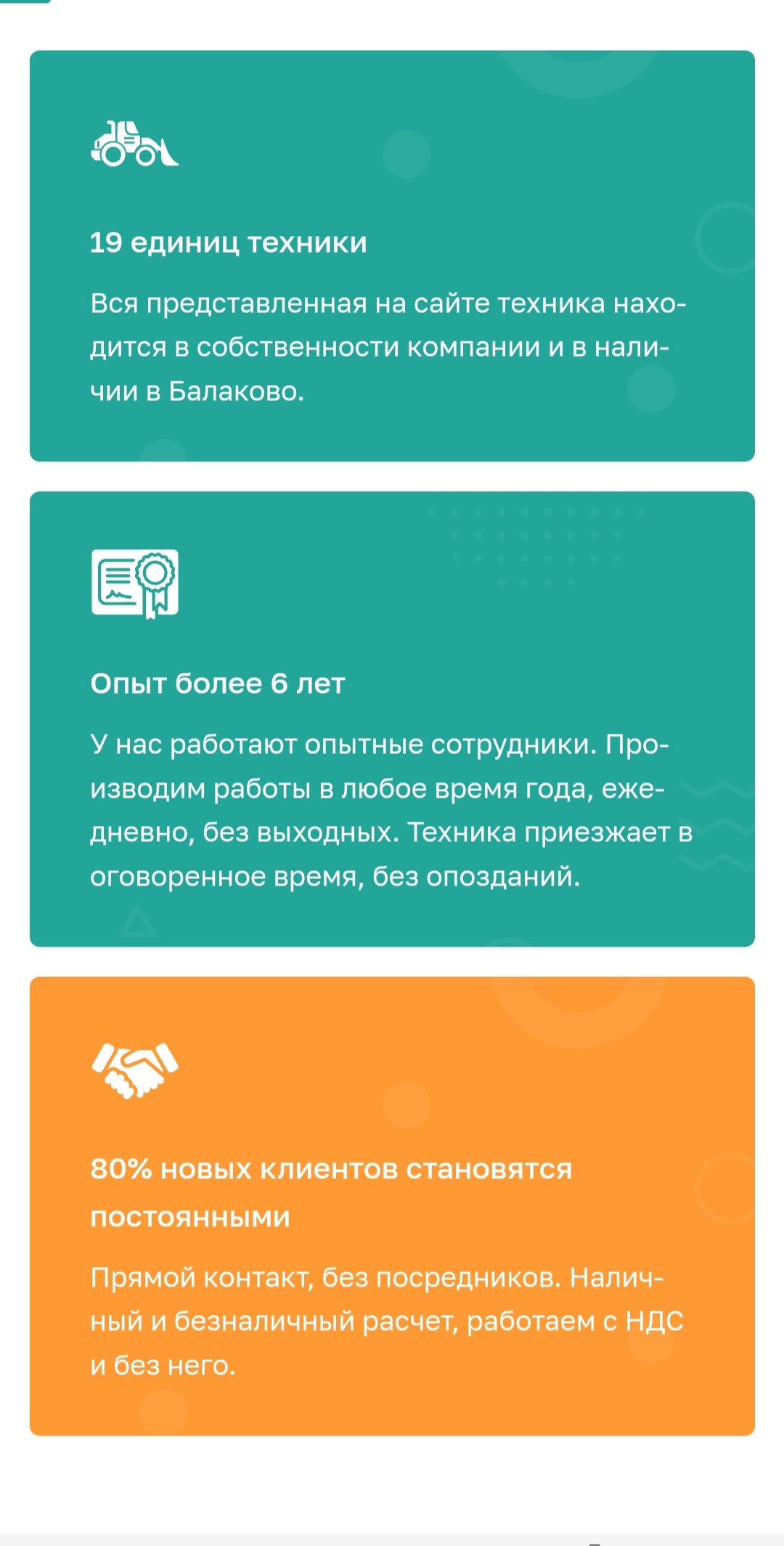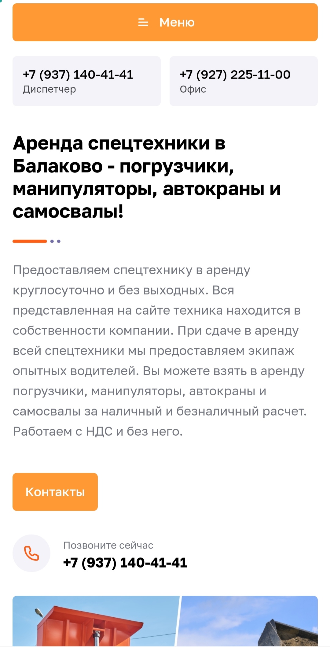 В ходе подготовки контента мы исследовали компанию клиента, перечень предлагаемой в аренду техники и её технические характеристики. Также проанализировали конкурентную среду, чтобы сайт заказчика выделялся на фоне остальных.