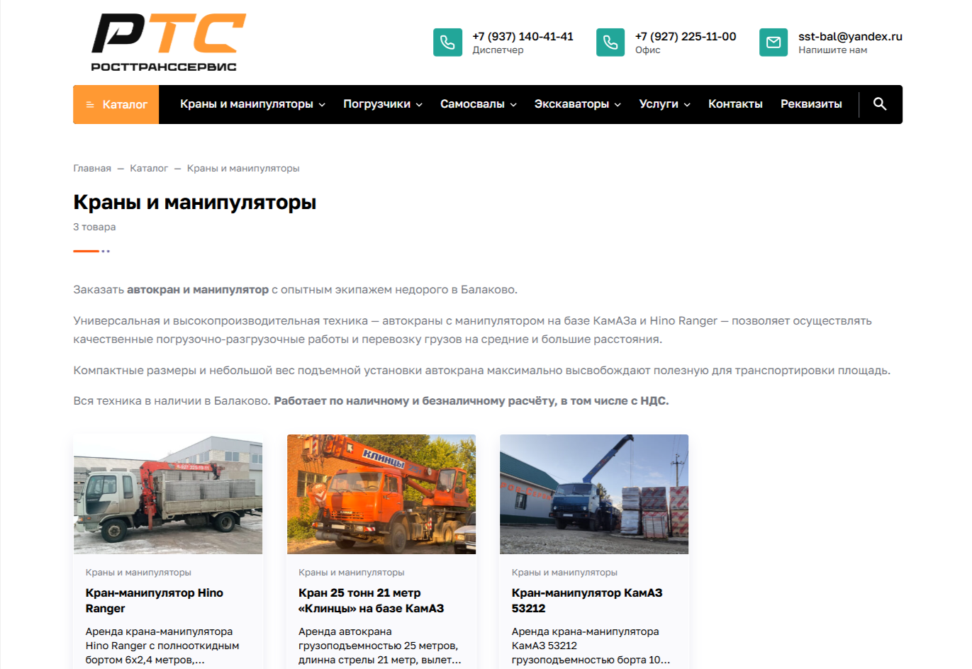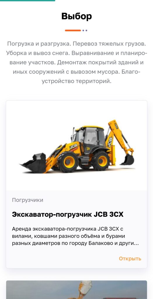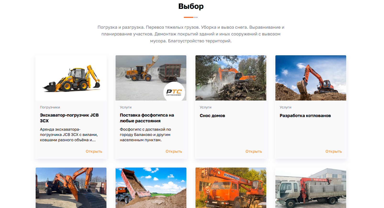 А чтобы ещё более детально продемонстрировать спецтехнику и услуги компании «РОСТТРАНССЕРВИС», на главной странице также был размещён блок «Выбор».