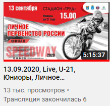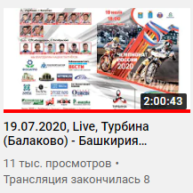 | 13.05.2021 | Чемпионат России по спидвею. Турбина – Башкирия |