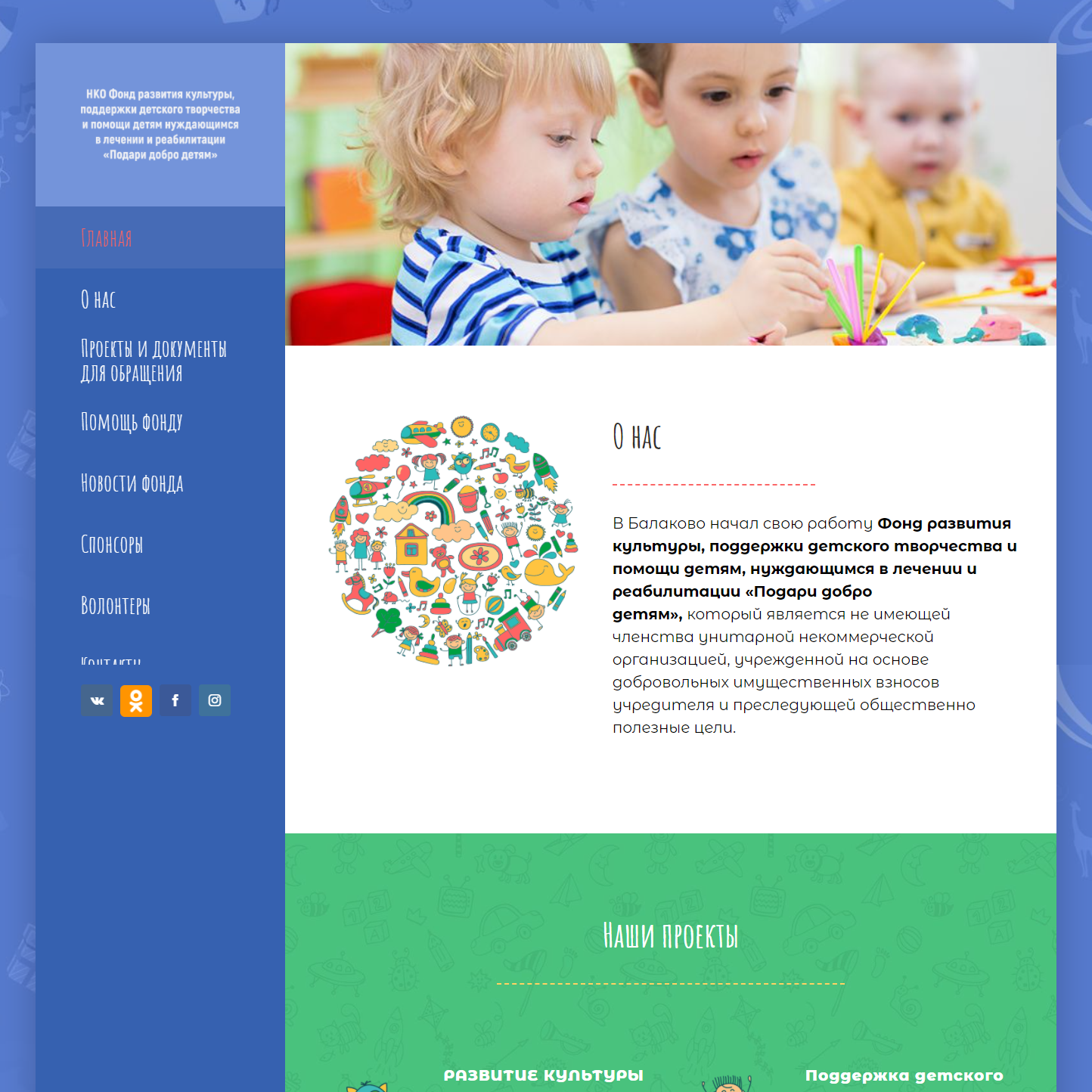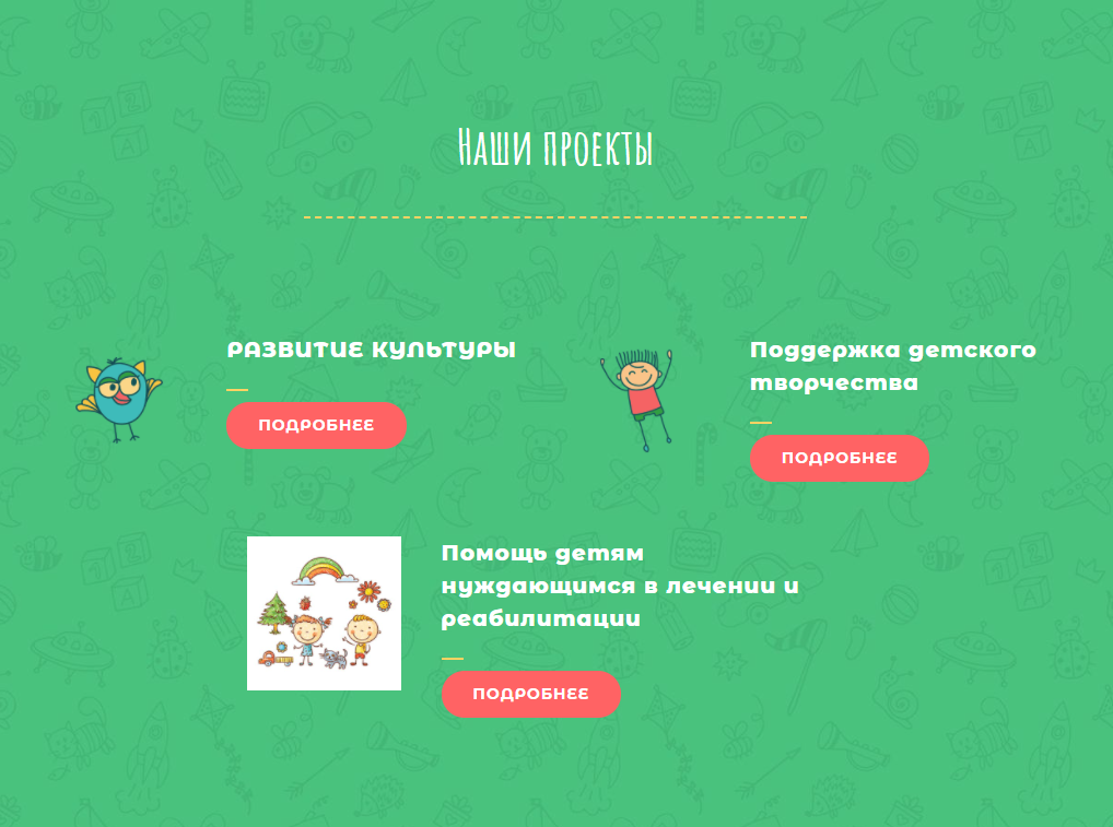 Благотворительным организациям тоже нужны сайты. Так как направление фонда — помощь детям, и сайт решили делать детским. Получилось вроде.