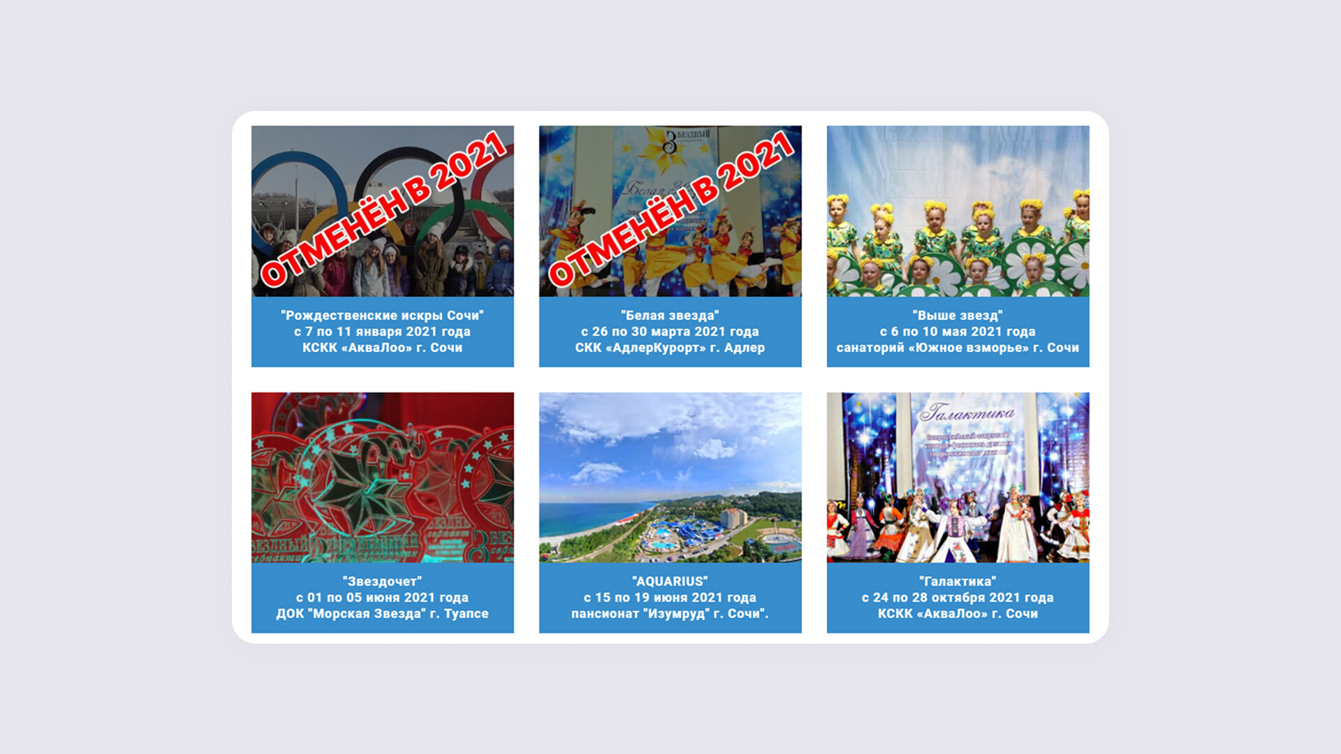 Отдельно есть страницы по каждому фестивалю, но там текст в основном, если хотите — посмотрите сами.