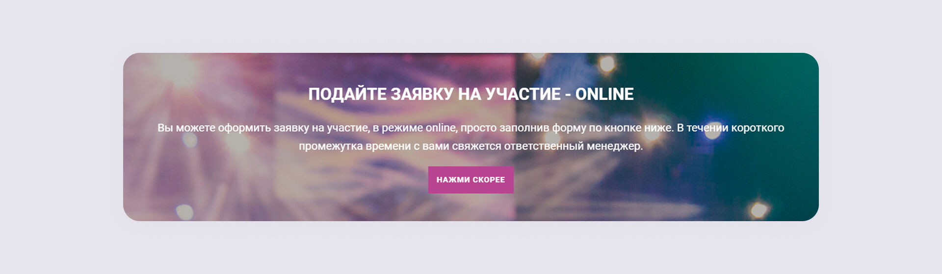 Обязательная ссылка на форму с заявкой на участие, которая ведет на страницу с контактами