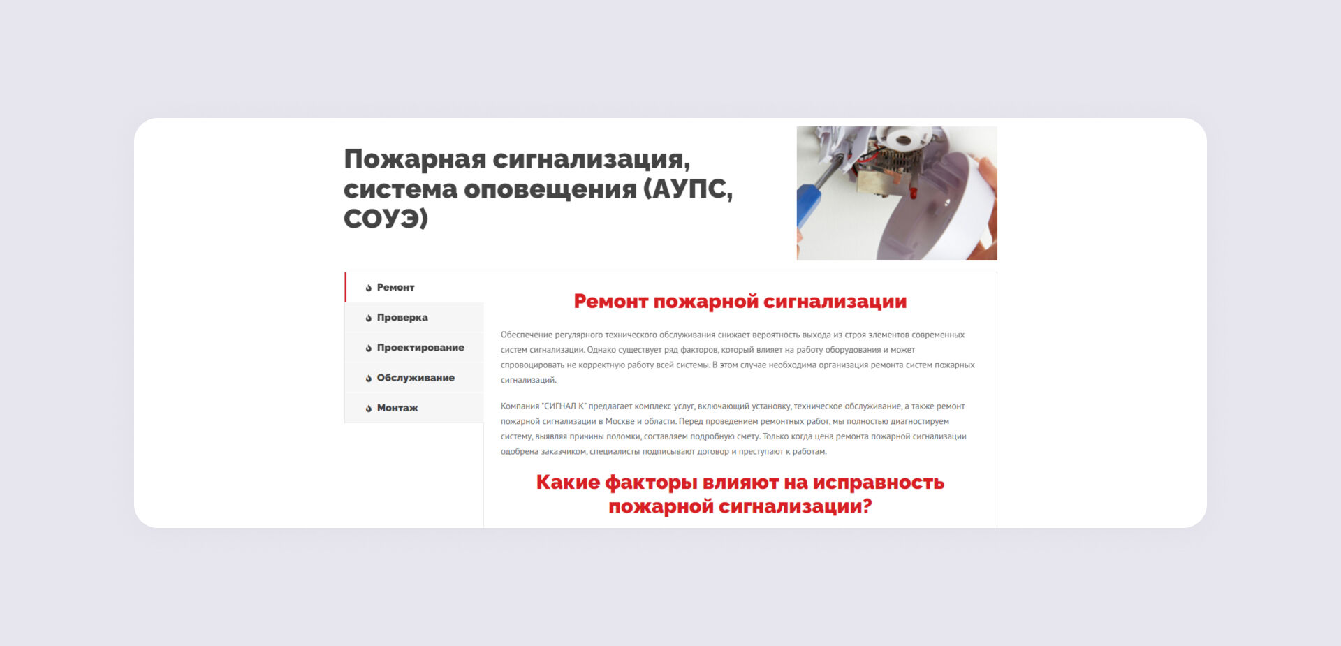 Мы всегда говорим нашим клиентам, что контент — король на сайте. Общий дизайн, цвет, кнопки, ссылки — это вторично и напрямую зависит от контента. Поэтому в первую очередь мы занялись структурированием услуг.
