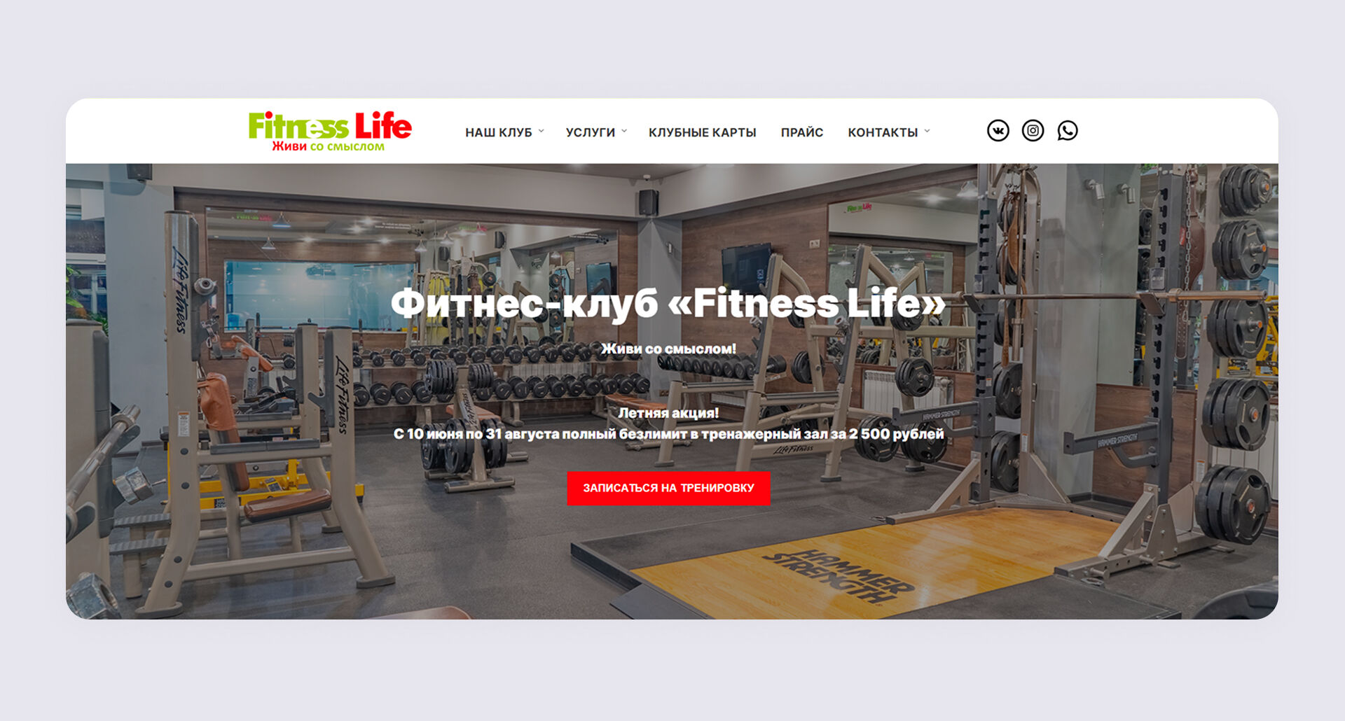 Наша главная цель заключалась в создании интуитивно понятного и информативного сайта для фитнес-клуба «Fitness Life», который эффективно демонстрирует предлагаемые услуги и привлекает новых клиентов.