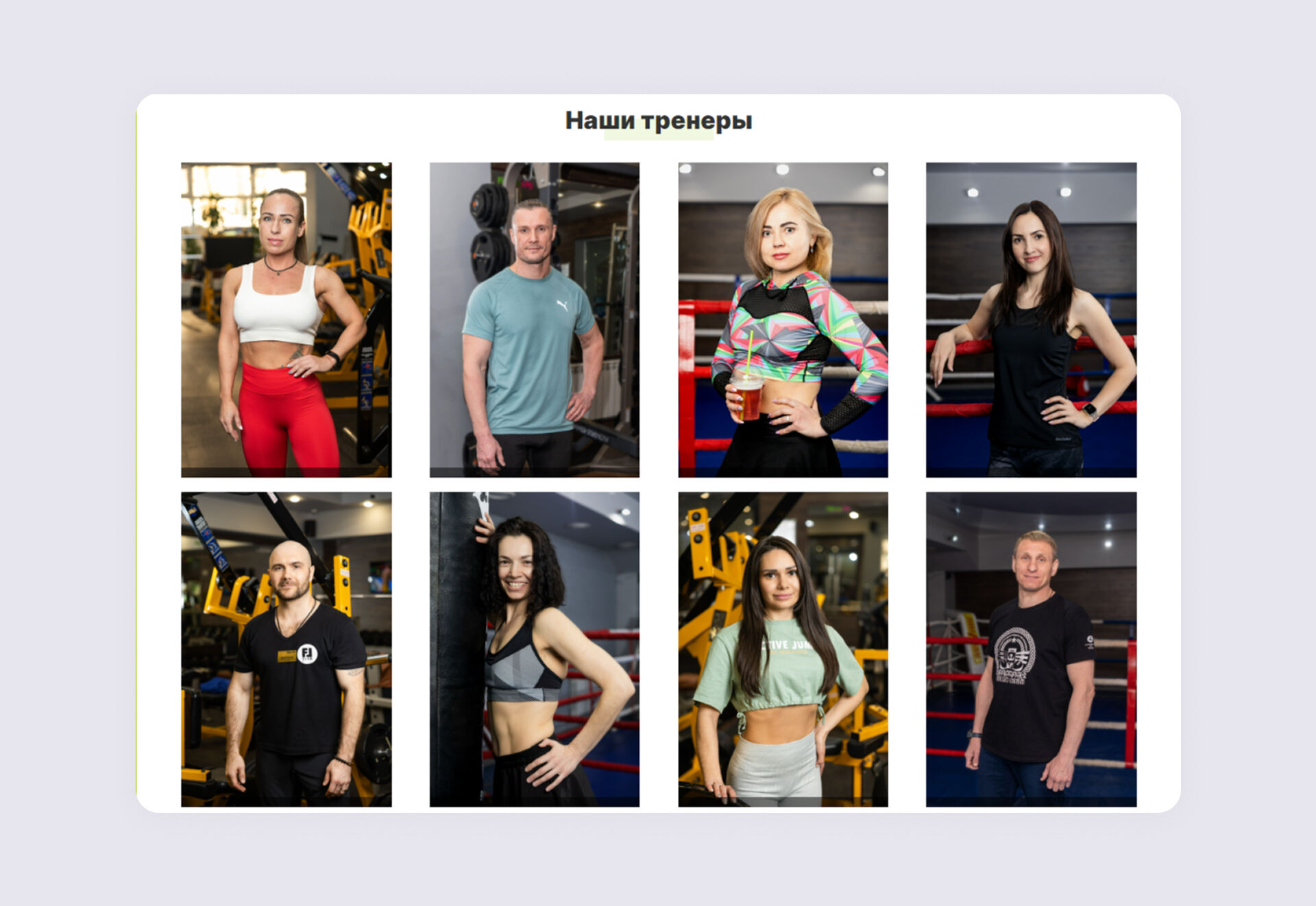 Важным этапом подготовки к созданию сайта стала фотосъемка. Наши фотографы запечатлели полный состав тренеров и интерьер клуба. Качественные фотографии в формате HDR помогли нам сформировать визуально привлекательный контент, который лучше передает атмосферу клуба.