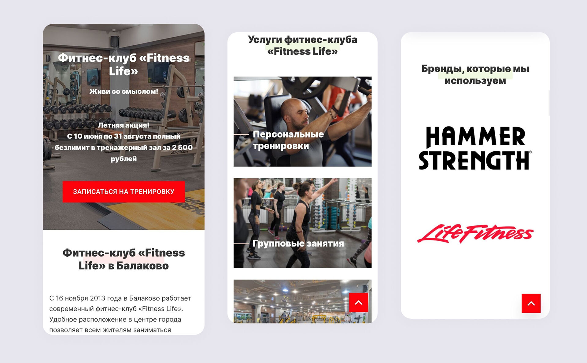 Создать сайт для фитнес клуба в городе Балаково «Fitness Life», который предоставляет информацию о услугах, персонале и преимуществах.