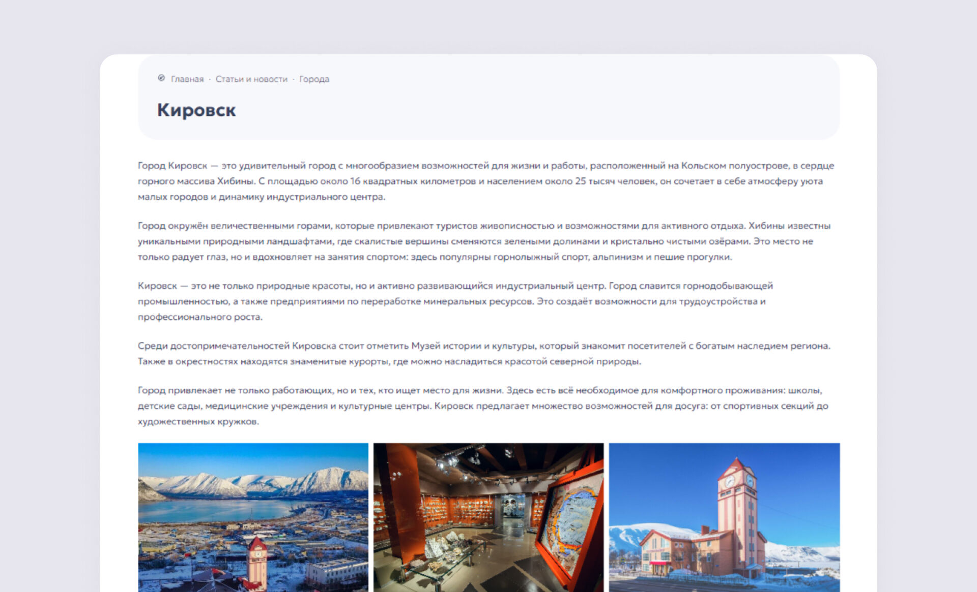 Для тех, кто хочет более подробно ознакомиться с городами, в которых размещаются подразделения, добавили соответствующую вкладку. Информация о городах, достопримечательностях, преимуществах жизни и работы в них. Данный блок является дополнительным аргументом в пользу того или иного выбора.