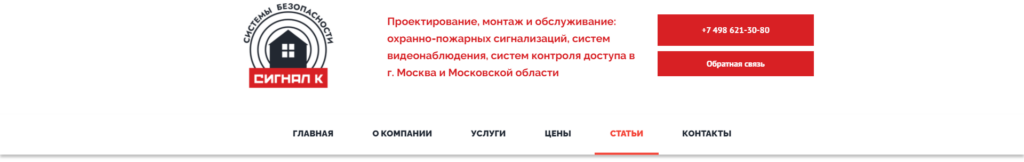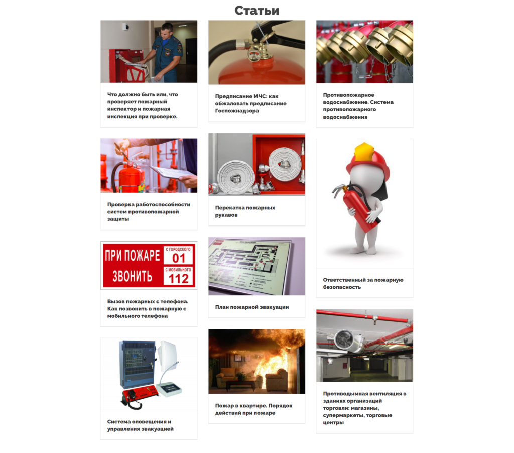Помимо услуг, на сайте было решено разместить тематические статьи.