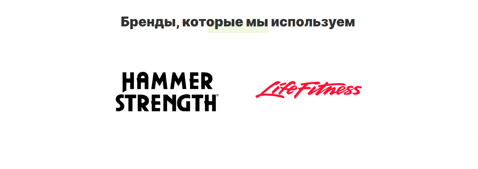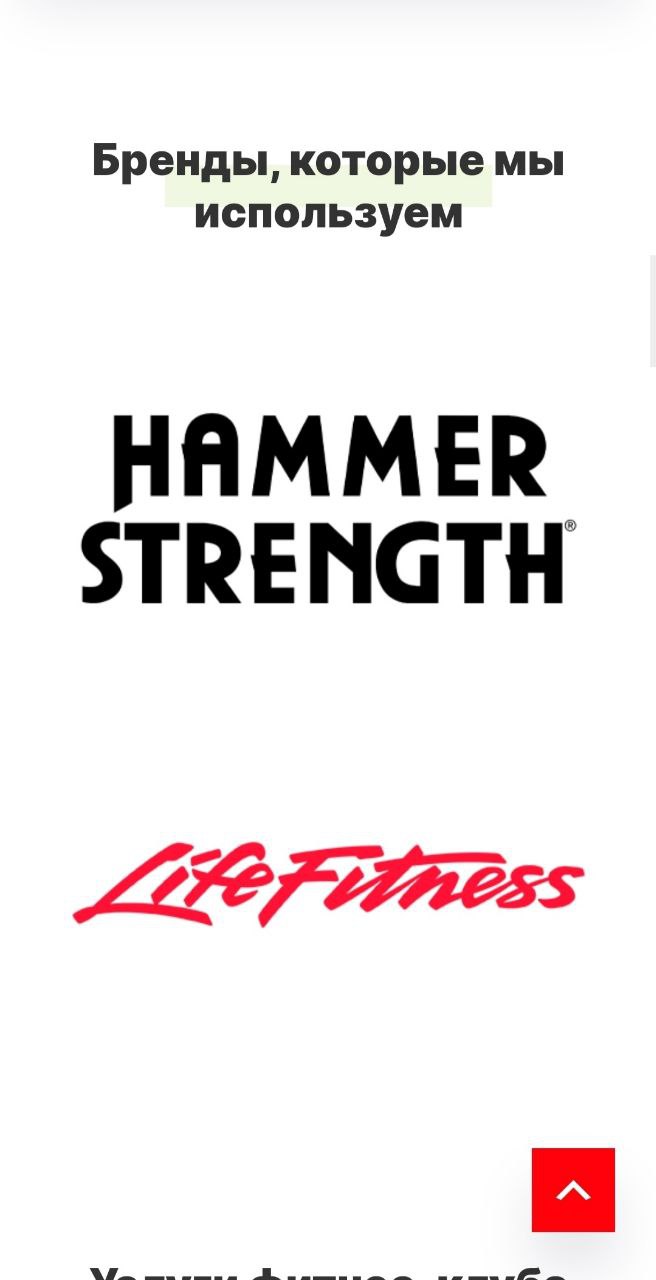 Также был добавлен блок с брендами, которые использует «Fitness Life». Мы подчеркнули, то что фитнес-клуб предлагает только высококачественное оборудование от известных мировых брендов, что значительно увеличивает привлекательность сайта. Клиенты стремятся заниматься на надежном и современном оборудовании.