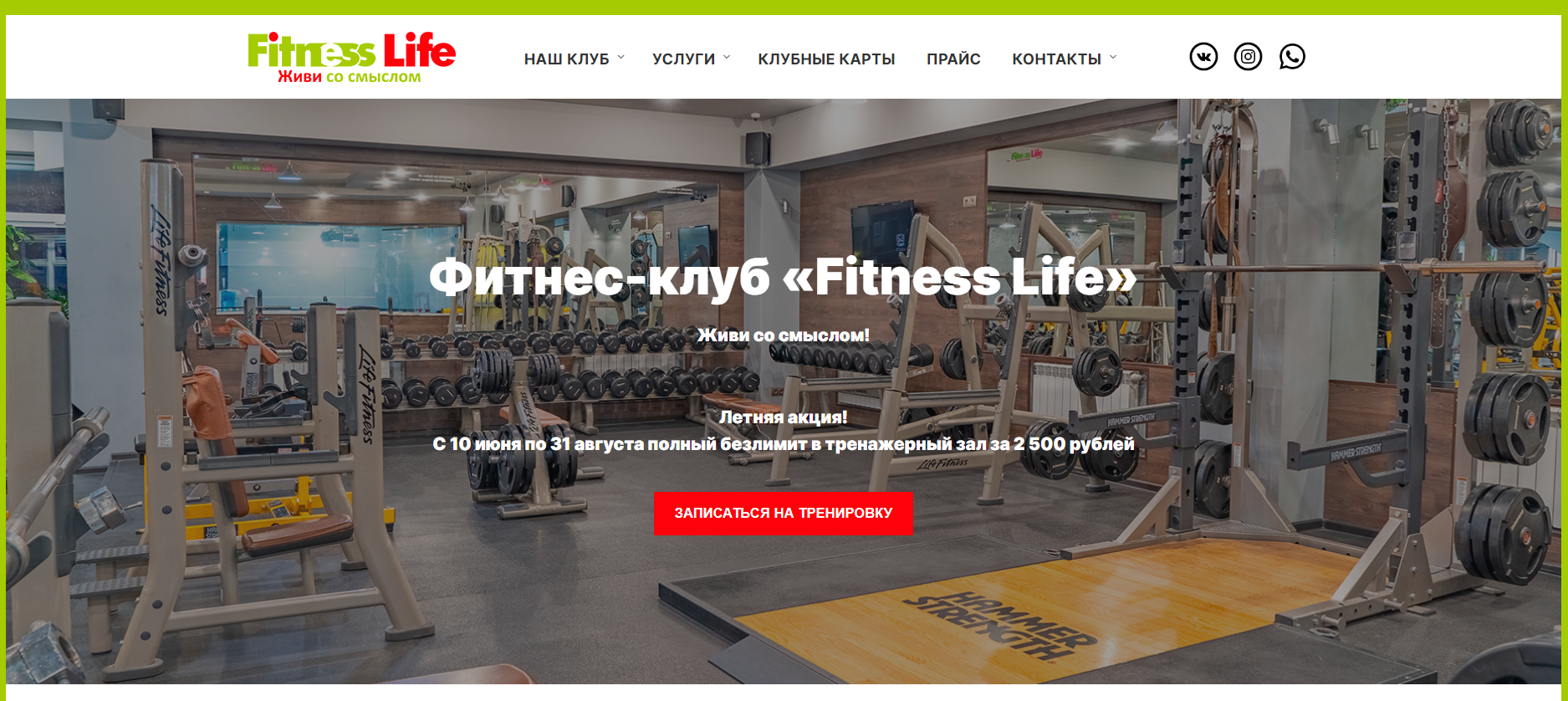 Наша главная цель заключалась в создании интуитивно понятного и информативного сайта для фитнес-клуба «Fitness Life», который эффективно демонстрирует предлагаемые услуги и привлекает новых клиентов.