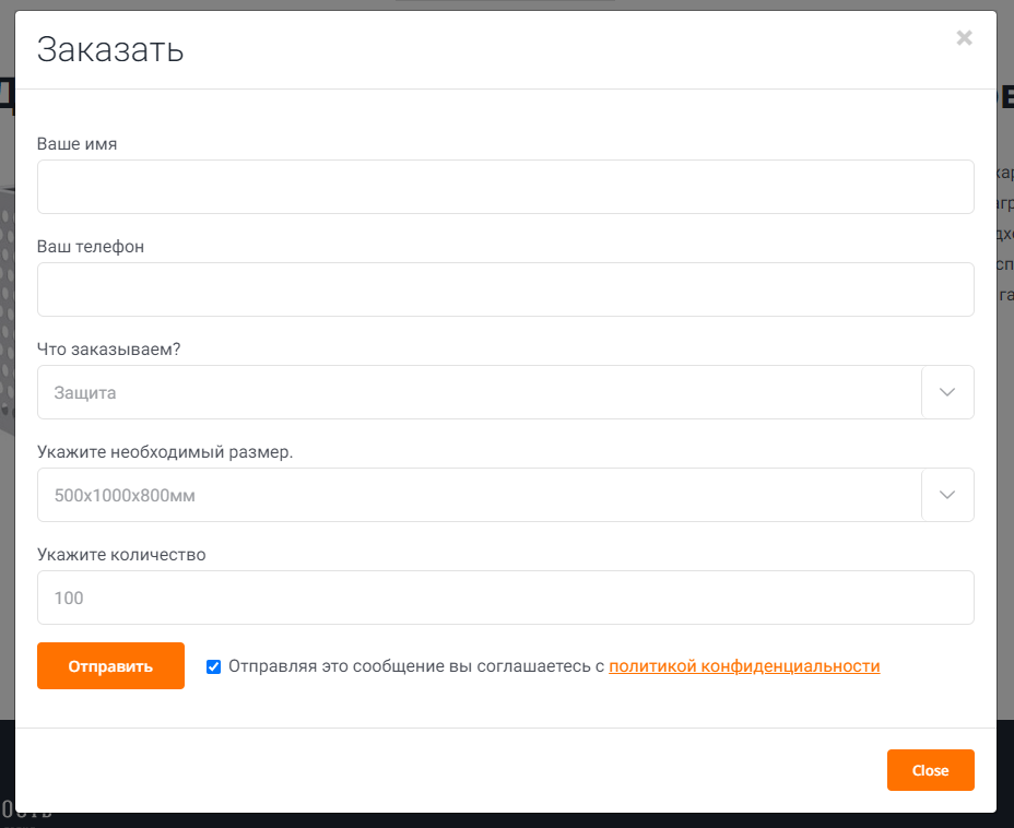 Но формы заявок на продукцию мы сделали, на каждую свою, вот пример формы заказа на продукцию для кондиционеров.