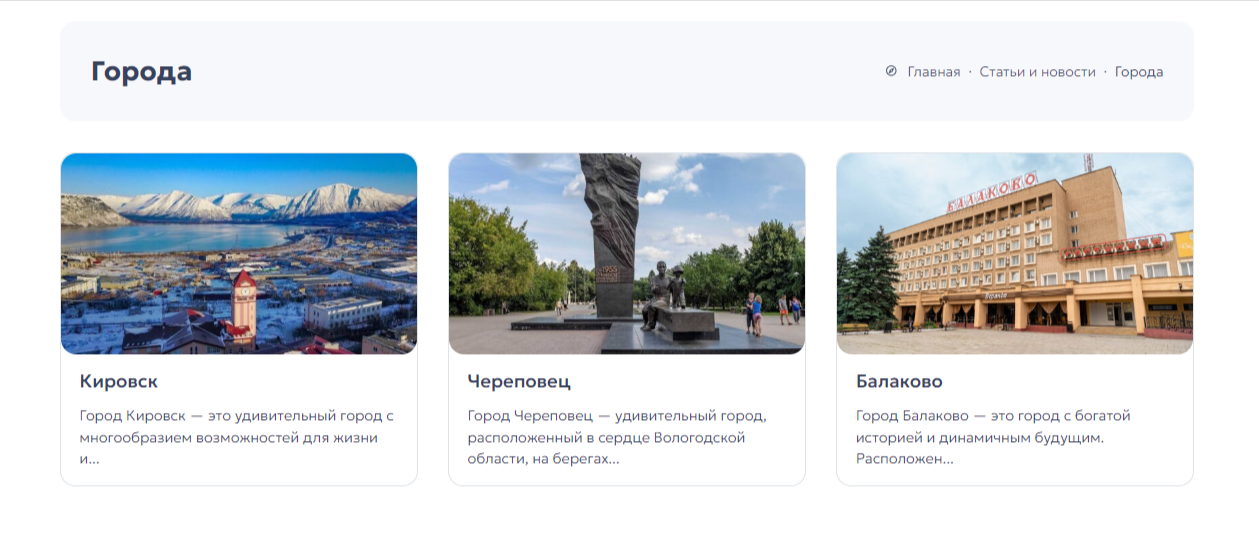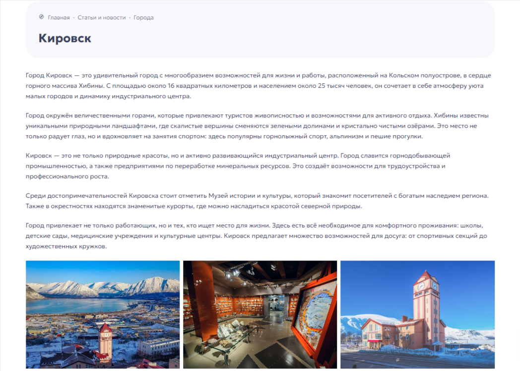 Для тех, кто хочет более подробно ознакомиться с городами, в которых размещаются подразделения, добавили соответствующую вкладку. Информация о городах, достопримечательностях, преимуществах жизни и работы в них. Данный блок является дополнительным аргументом в пользу того или иного выбора.