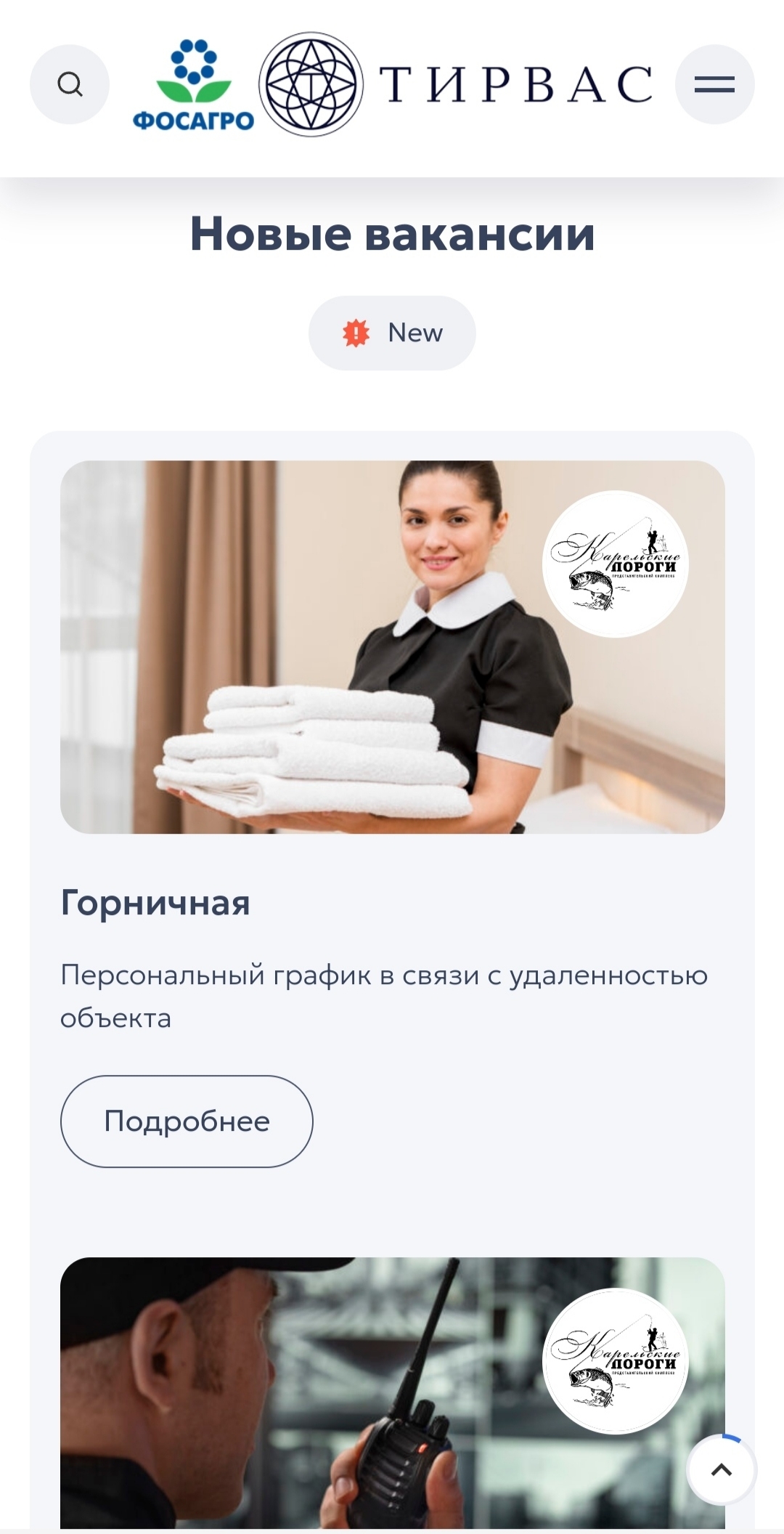 Следующий блок показывает актуальные вакансии. При заинтересованности в конкретной вакансии пользователь может легко перейти к подробной информации, что значительно упрощает процесс поиска и выбора.