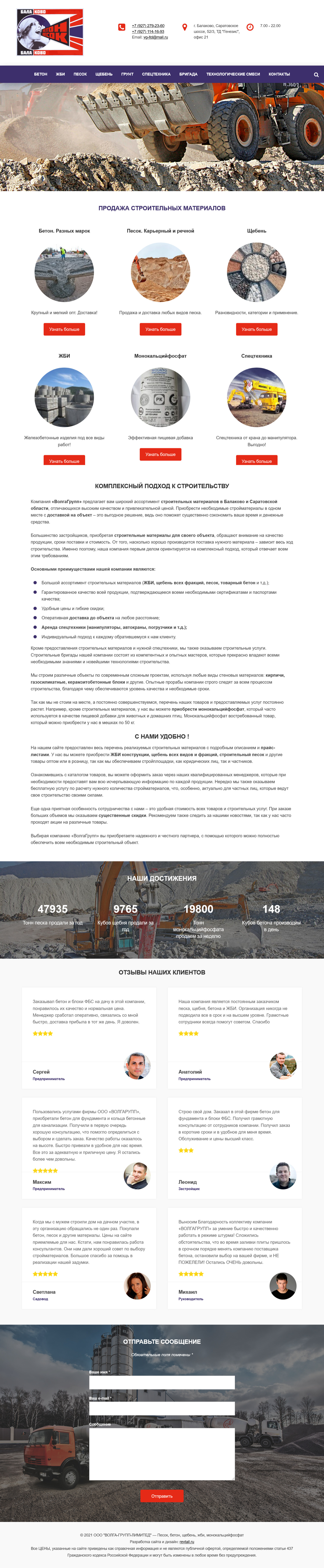 Компания «ВОЛГА-ГРУПП-ЛИМИТЕД» занимается поставкой строительных материалов для строительных площадок в Балаково и Саратовской области.