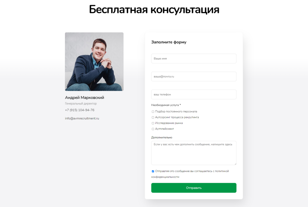 А сейчас, мы закончили с новым сайтом для ООО «ЭйВиЭм Рекруитмент». Ух ну и словечко. Но звучит солидно и даже в какой то степени стильно.