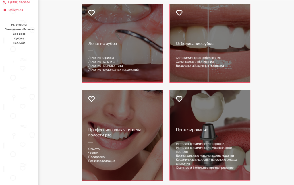В целом, сайт стоматологической клиники должен содержать информацию о услугах, ценах, персонале и контактные данные.