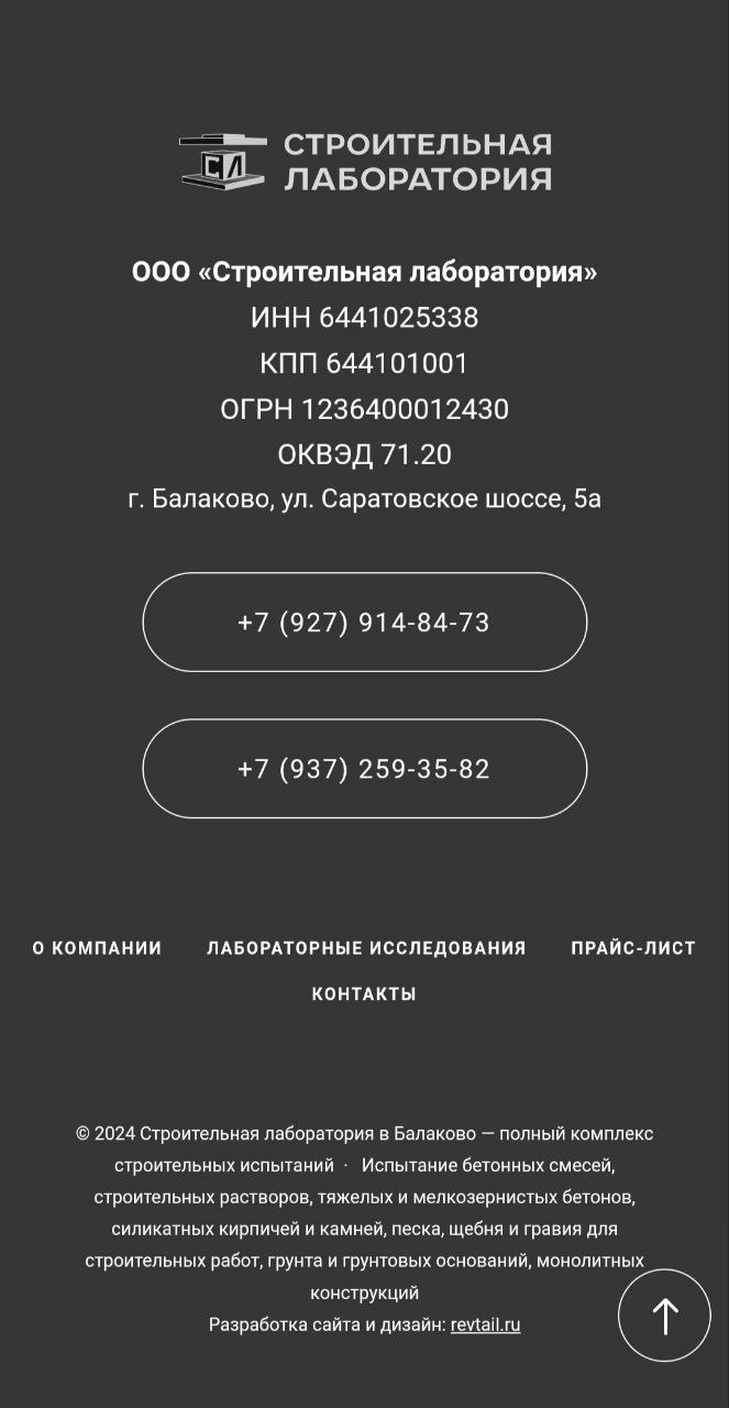 Основной целью создания сайта для «Строительной лаборатории» было предоставление полной информации об её услугах, а также разработка интуитивно понятного интерфейса для комфортного взаимодействия с потенциальными клиентами и партнерами. В ходе дальнейшей разработки мы учли все ключевые моменты.