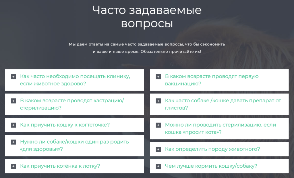 Блок с вопросами на которые уже есть ответ, что бы помочь определится с датой записи.