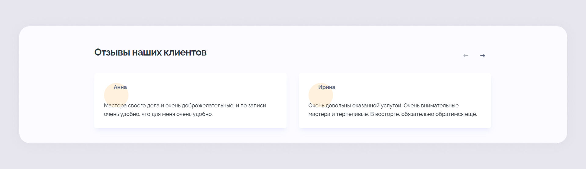 В завершении на главной странице был размещен блок отзывов. Данный блок также повышает уровень доверия потенциальных клиентов.