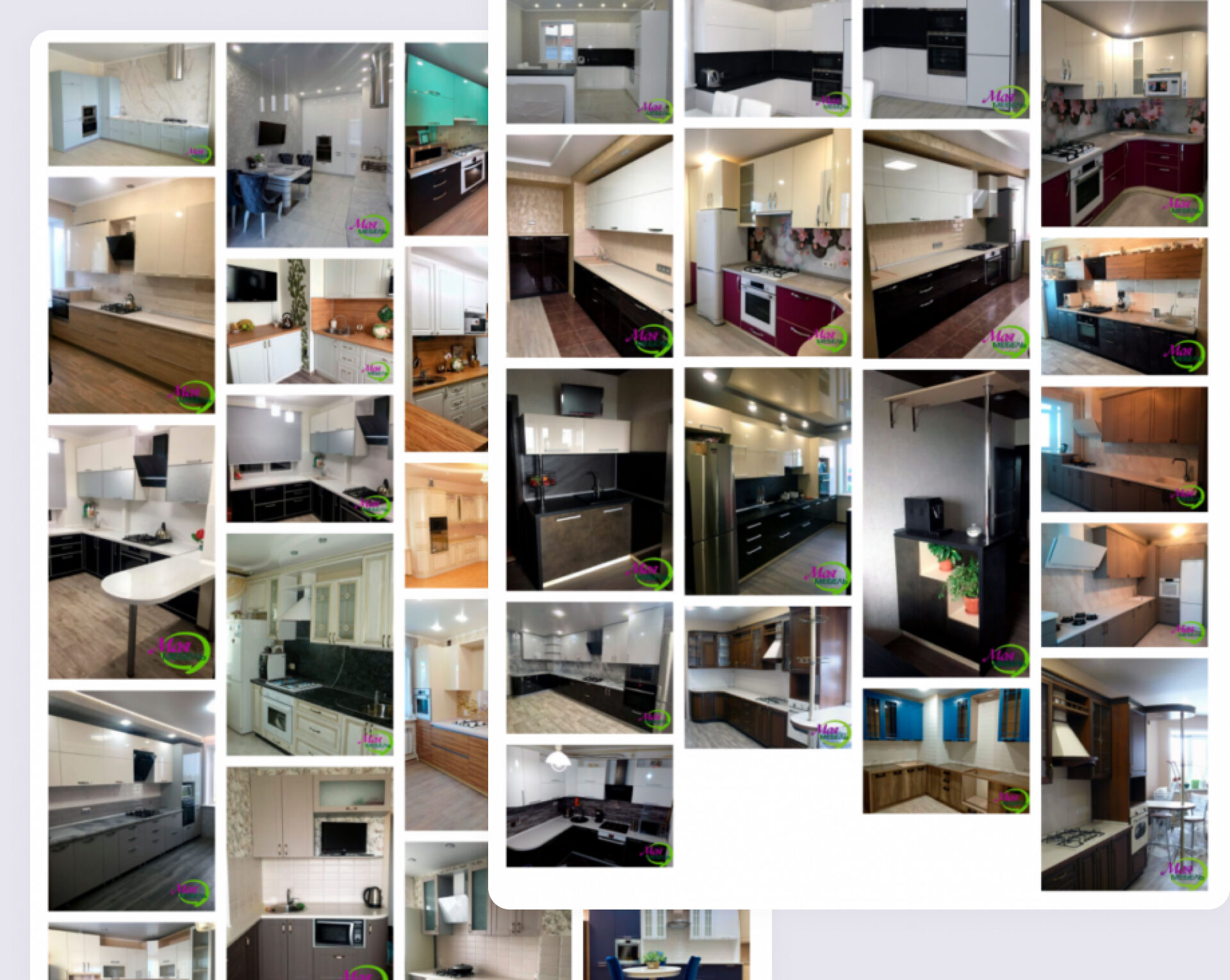 В каждом из разделов — большое количество фотографий, вот к примеру кухни:
