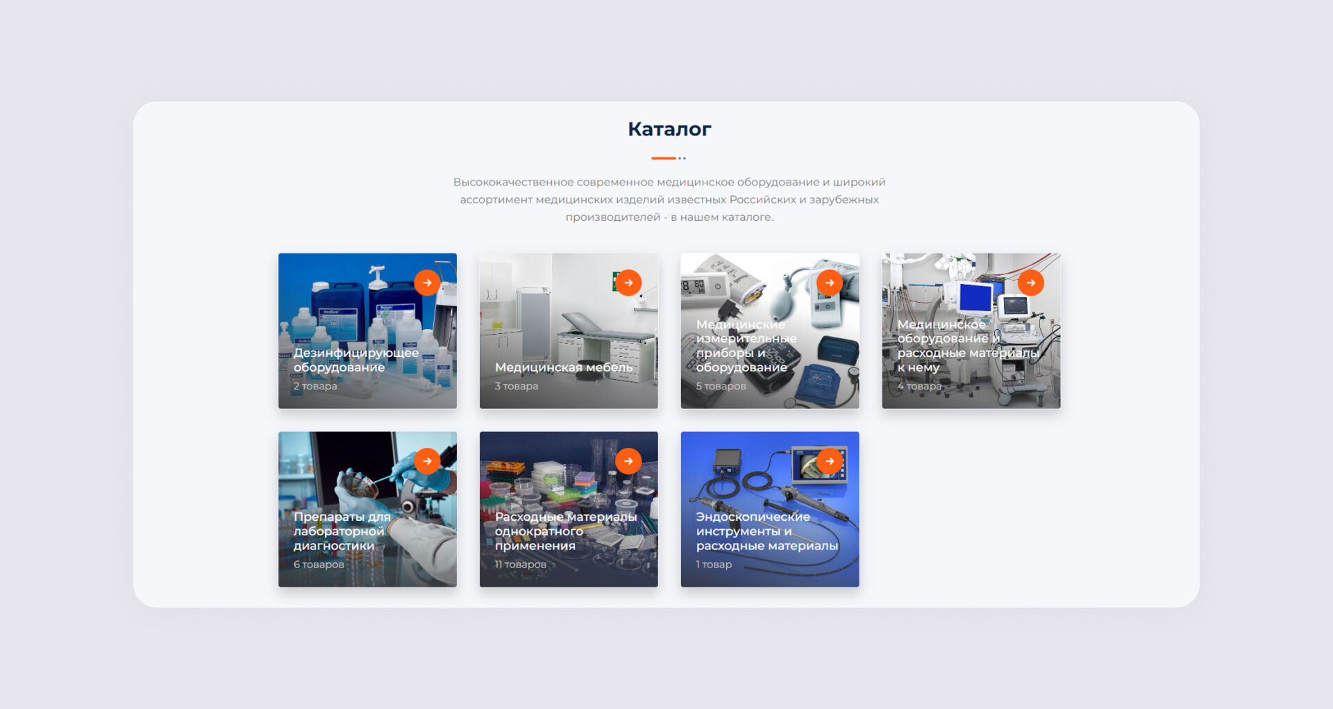 Также нами был добавлен структурированный блок каталога, который позволяет легко и быстро находить нужное. Все категории имеют понятные названия и проиллюстрированы.