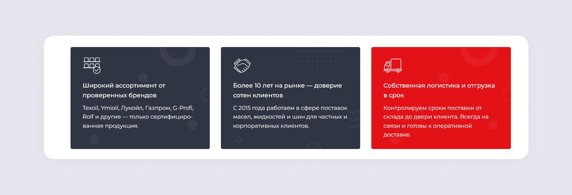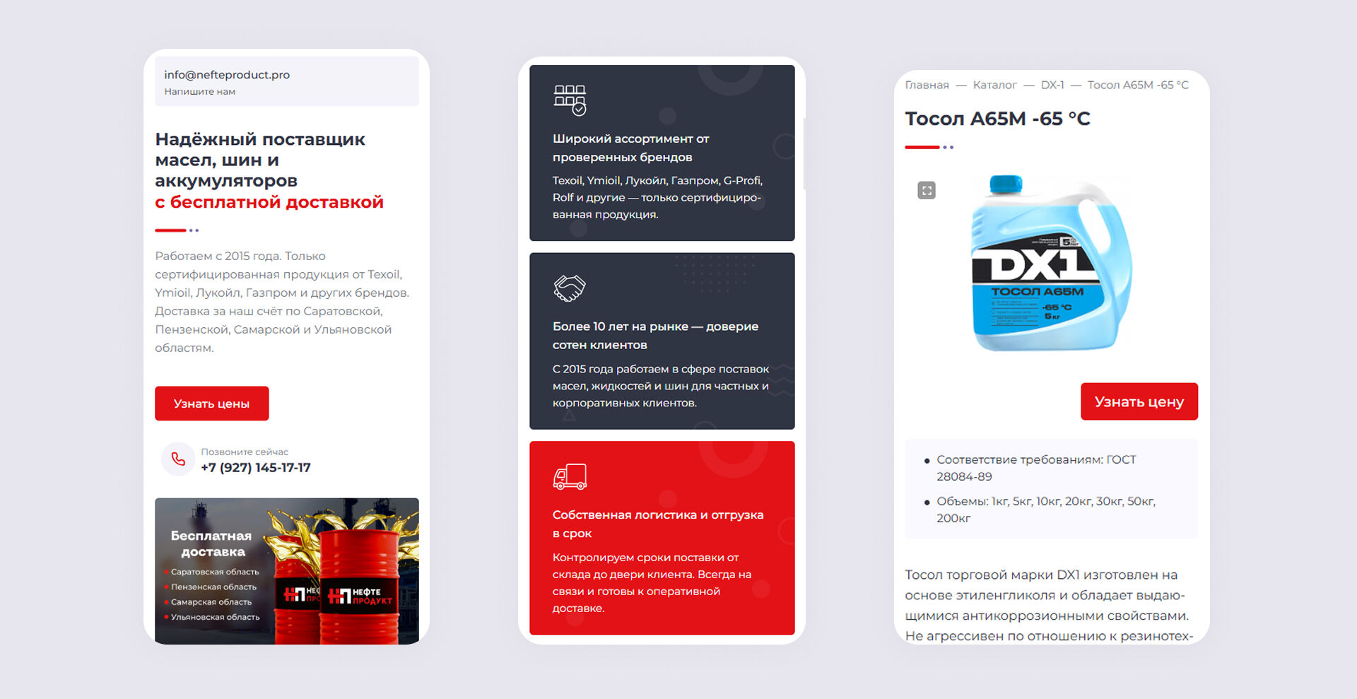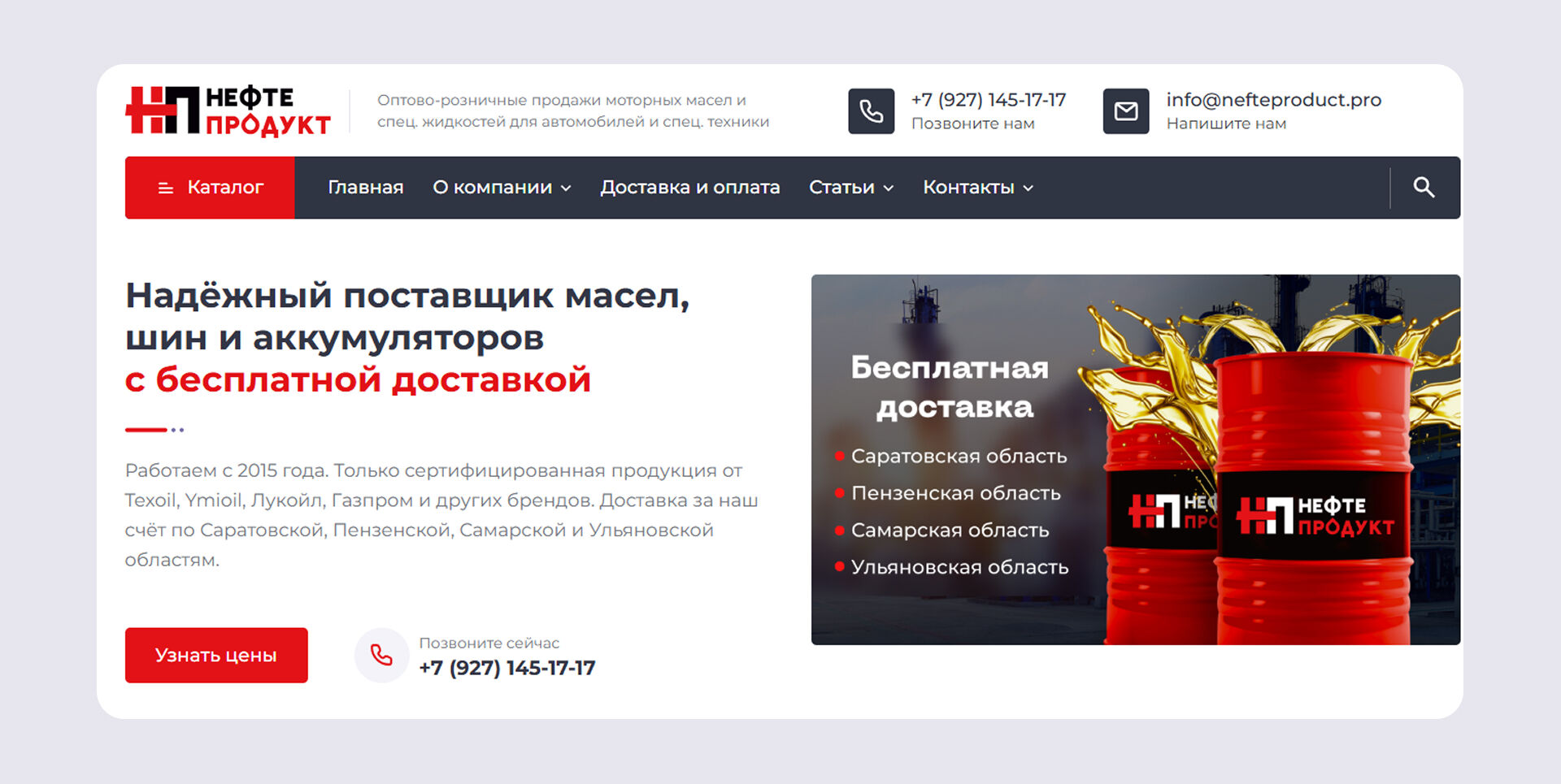 Необходимо разработать сайт-визитку для поставщика моторных масел и специальных жидкостей.