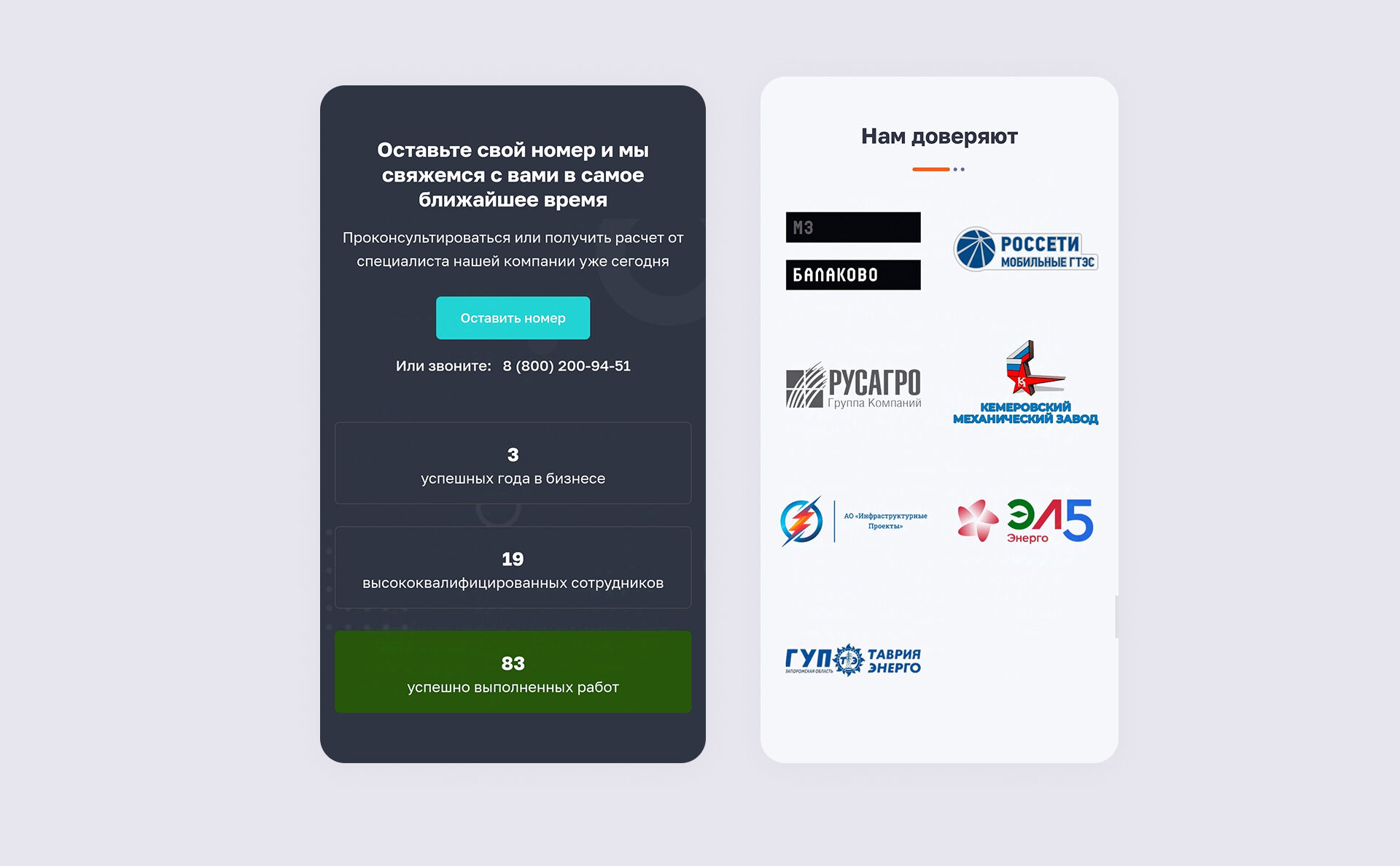 Также добавили блок с логотипами компаний, которые выбрали НПФ «Инновации» в качестве надежного подрядчика. Размещение логотипов и названий компаний, которые воспользовались услугами и остались довольны, выполняет несколько важных функций: социальное доказательство, укрепление репутации, увеличение конверсии, маркетинг и стимулирование интереса.