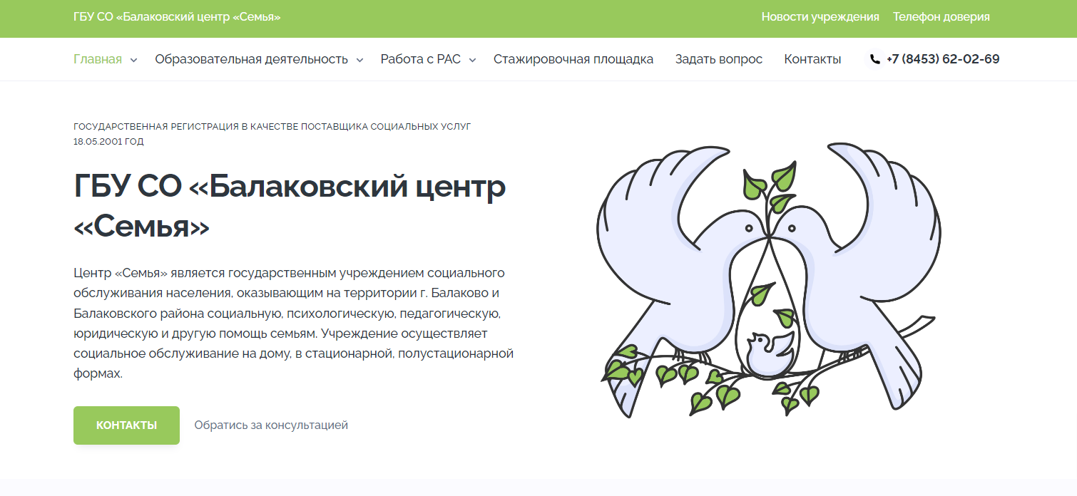 Создать сайт для ГБУ СО «Балаковский центр «Семья», который предоставляет полный спектр возможностей для помощи детям и семьям, а также дает возможность ознакомления с документацией.