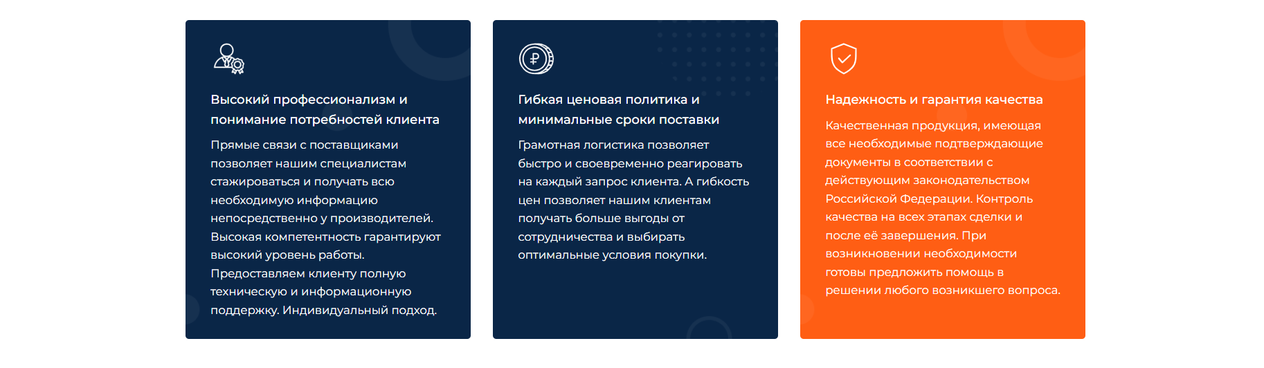 На Главной странице был добавлен раздел с преимуществами. Этот блок привлекает внимание пользователей за счёт ёмко и кратко сформулированных доводов и цветового контраста. Дополнительно преимущества проиллюстрированы иконками, что также привлекает внимание и способствует запоминанию информации.