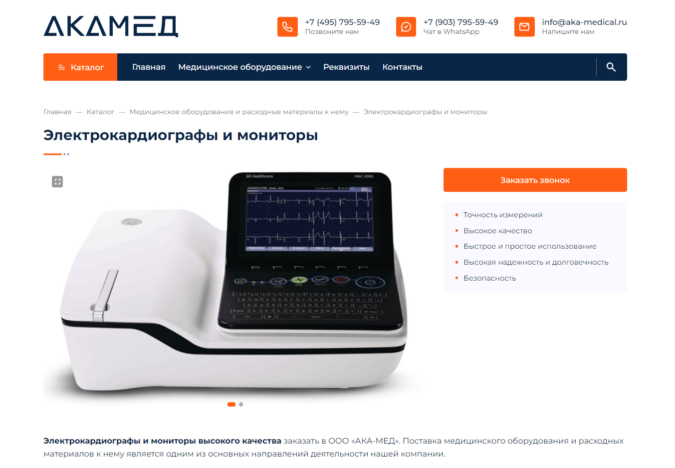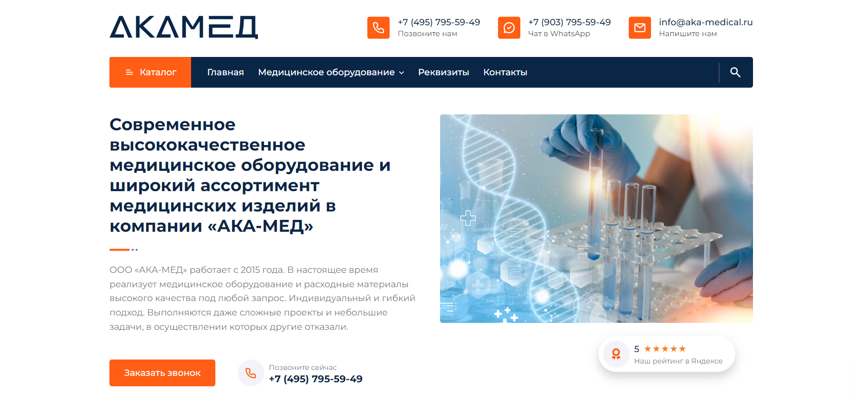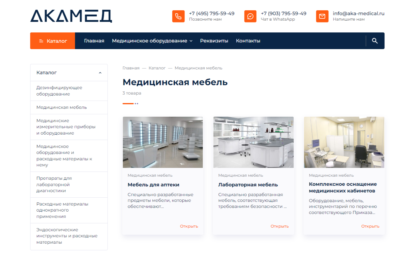 Создать сайт для компании «АКА-МЕД», занимающейся продажей медицинского оборудования и широкого ассортимента медицинских изделий.