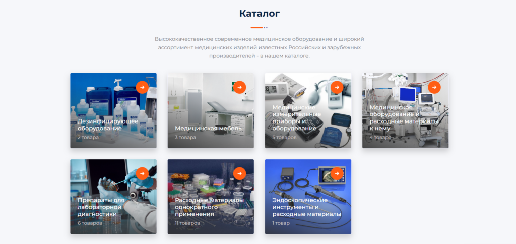 Также нами был добавлен структурированный блок каталога, который позволяет легко и быстро находить нужное. Все категории имеют понятные названия и проиллюстрированы.