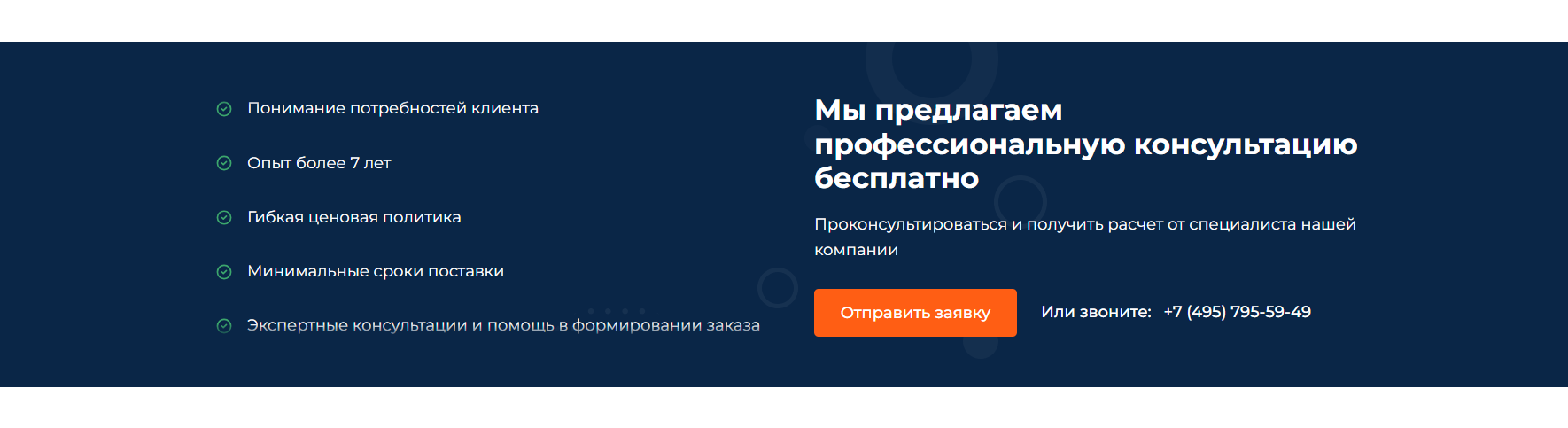 На Главной странице сайта информационные блоки гармонично чередуются с формами Призыва к действию. Это гарантирует легкий доступ к контактной информации и делает процесс связи более удобным, оставаясь всегда на виду.
