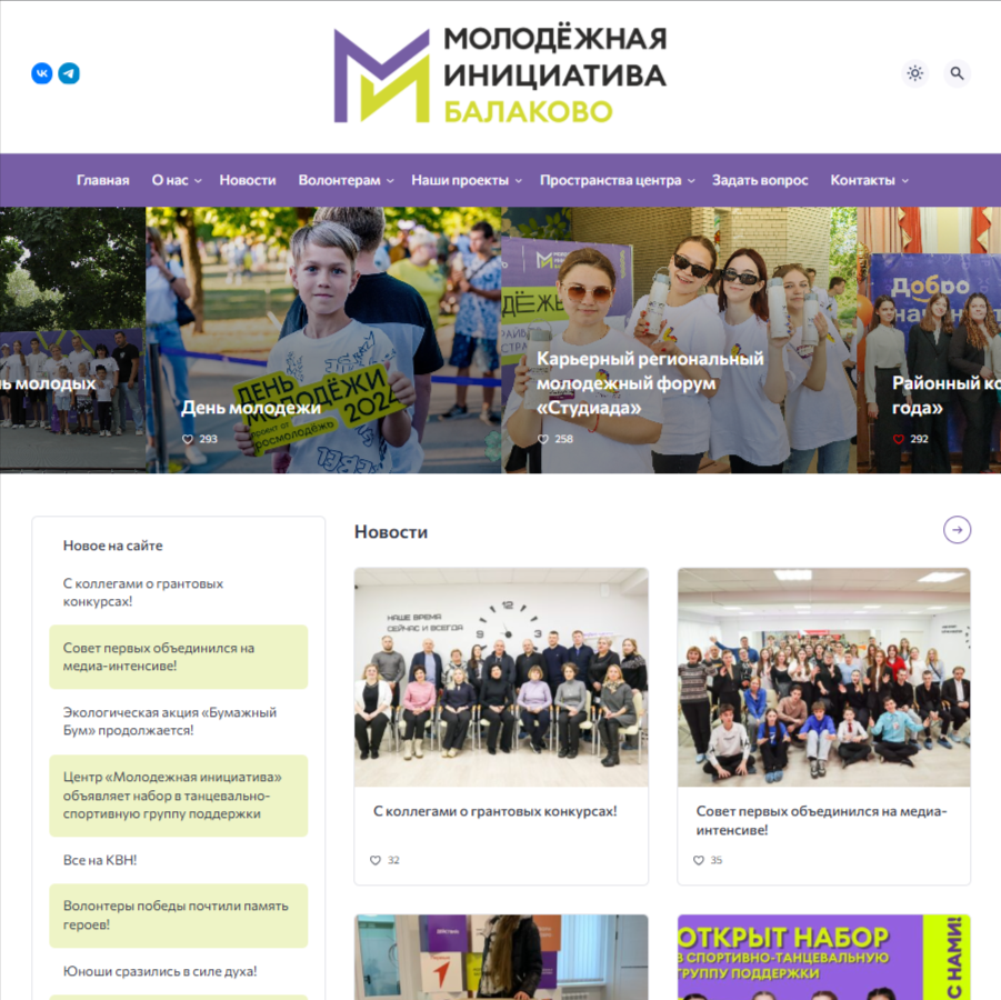 Основной целью создания сайта для «Молодежной инициативы» было предоставление удобной площадки с наиболее полной информацией о различных осуществляемых проектах, а также новостях.