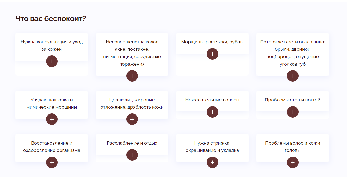 На главной странице мы разместили блок, демонстрирующий услуги, с акцентом на то, какие актуальные для пользователя проблемы они решают. Такой подход не только привлекает внимание посетителя, но и помогает ему осознать, как предложение может улучшить его жизнь и решить возникшие трудности.
